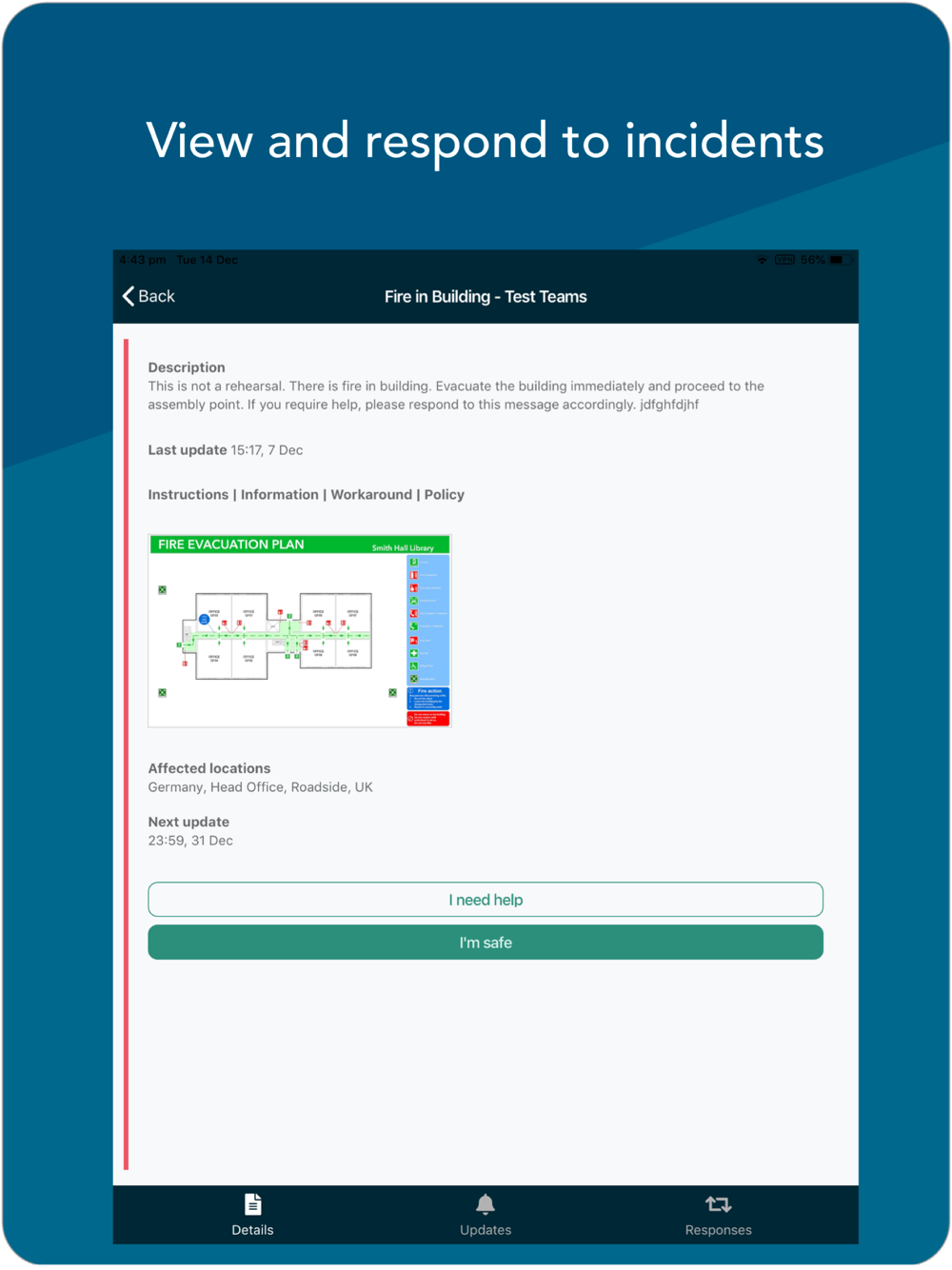 - Take action directly from the app and share that you’re affected with your organisation by hitting the ‘I’m Affected’ button.
