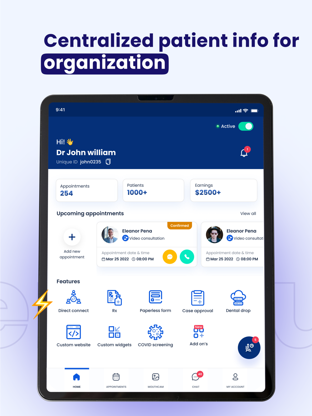 Dental offices can use this mobile app to communicate with patients from any location anytime they like. Dental professionals can communicate with patients, send notifications, prescribe medications, use intra-oral cameras to view patient’s mouth remotely, as well as provide emergency dental consultations and get paid for their time.