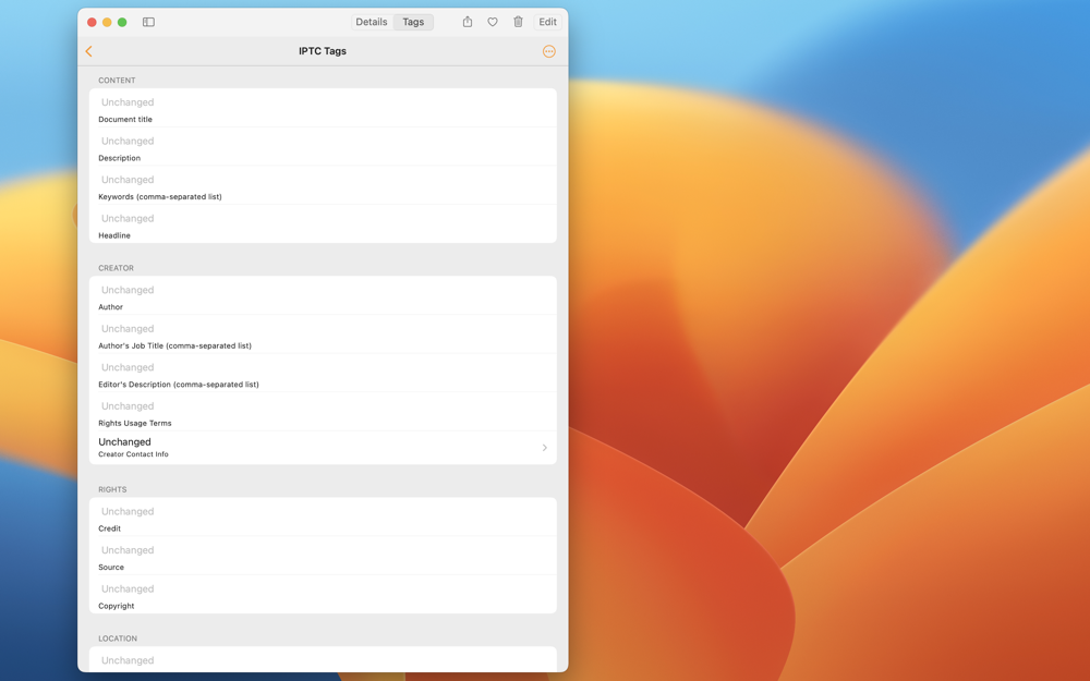 This release is packed with upgrades across accessibility, bug fixes, and UI polish — with even more enhancements coming soon!Accessibility improvements: - Enhanced VoiceOver support - Full Voice Control compatibility - Dynamic Type everywhereMetadata fixes: - Coordinates always resolve to addresses (with Internet) - Editing view displays different dates & locations when values differ between tags, asset database, or file - Access date and location on picked images outside photo-library grantsUI tweak: - icon flags date/location derived from non-EXIF sources in Details viewThe app now requires macOS 14.0.