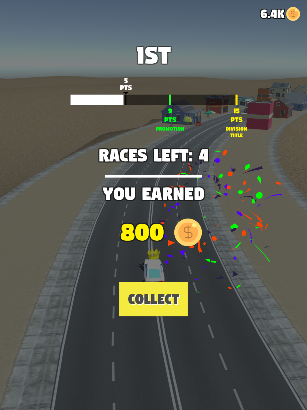 You race 5 times in one season. You must collect sufficient points to promote to the next division. You will get: