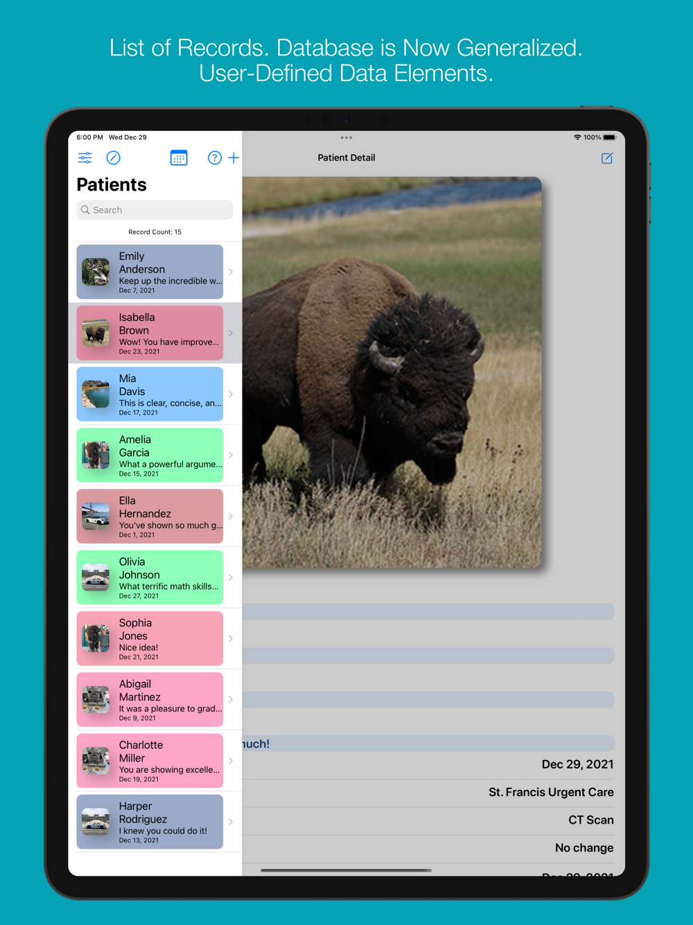 A record log for Medical Resident Physicians. Fully configurable for any Medical specialty. Also, now, a general purpose database with user-defined fields that can apply to any field, not just medicine.