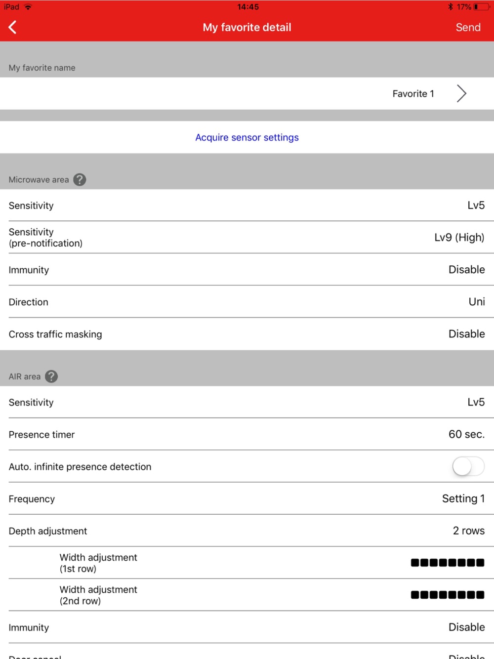 In addition to various parameter changes, setting registration to "My favorite" and multilingual descriptions make the easiest sensor configuration ever in the door sensor industry. The interface is available in several languages: English, German, French, Italian, Spanish, Dutch and Japanese.