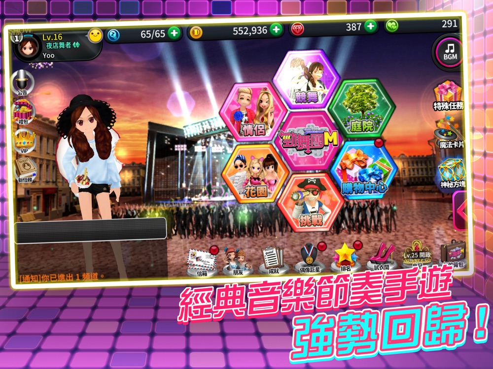 玩家可以自行開房或加入其他玩家舞房,