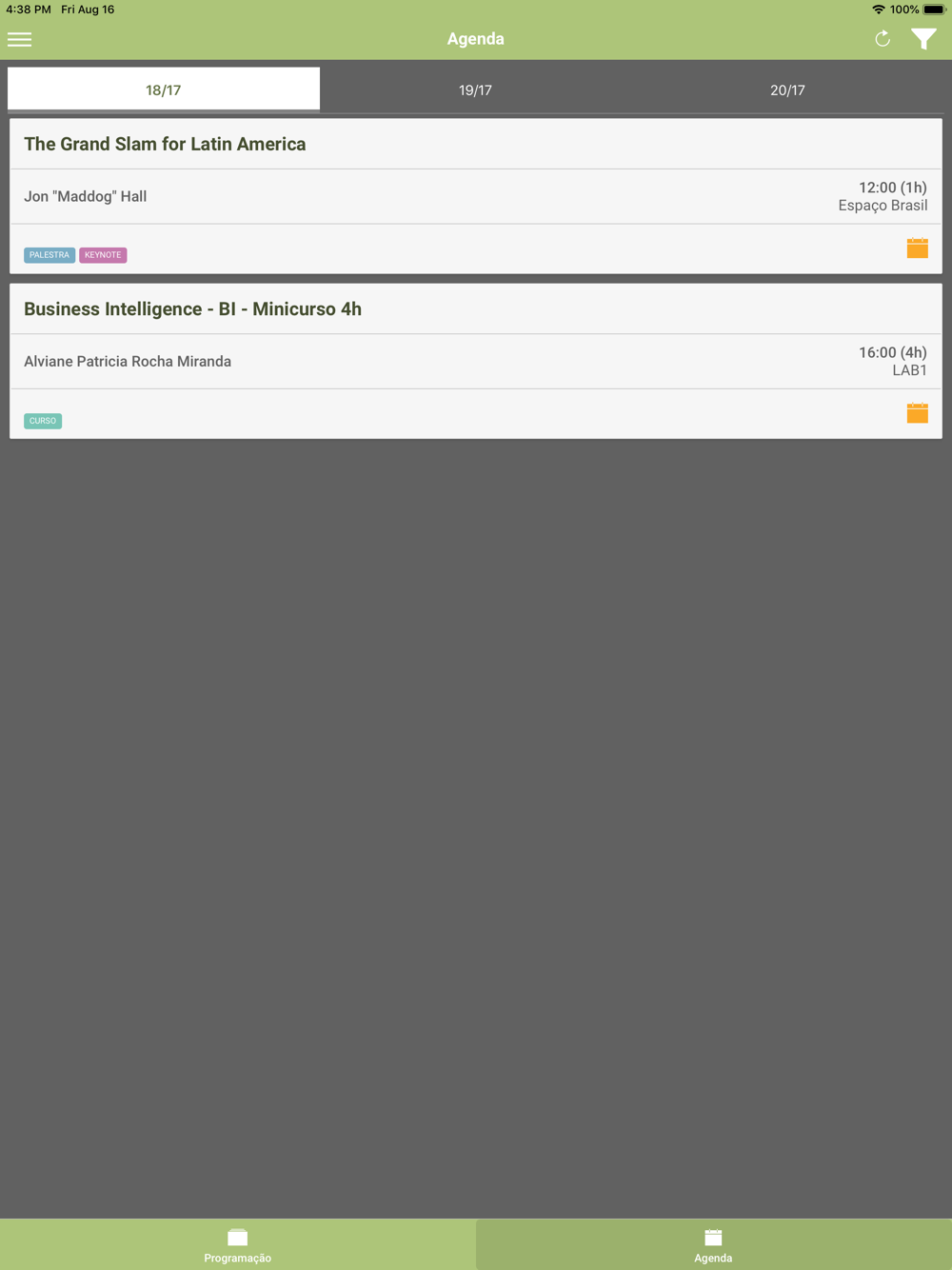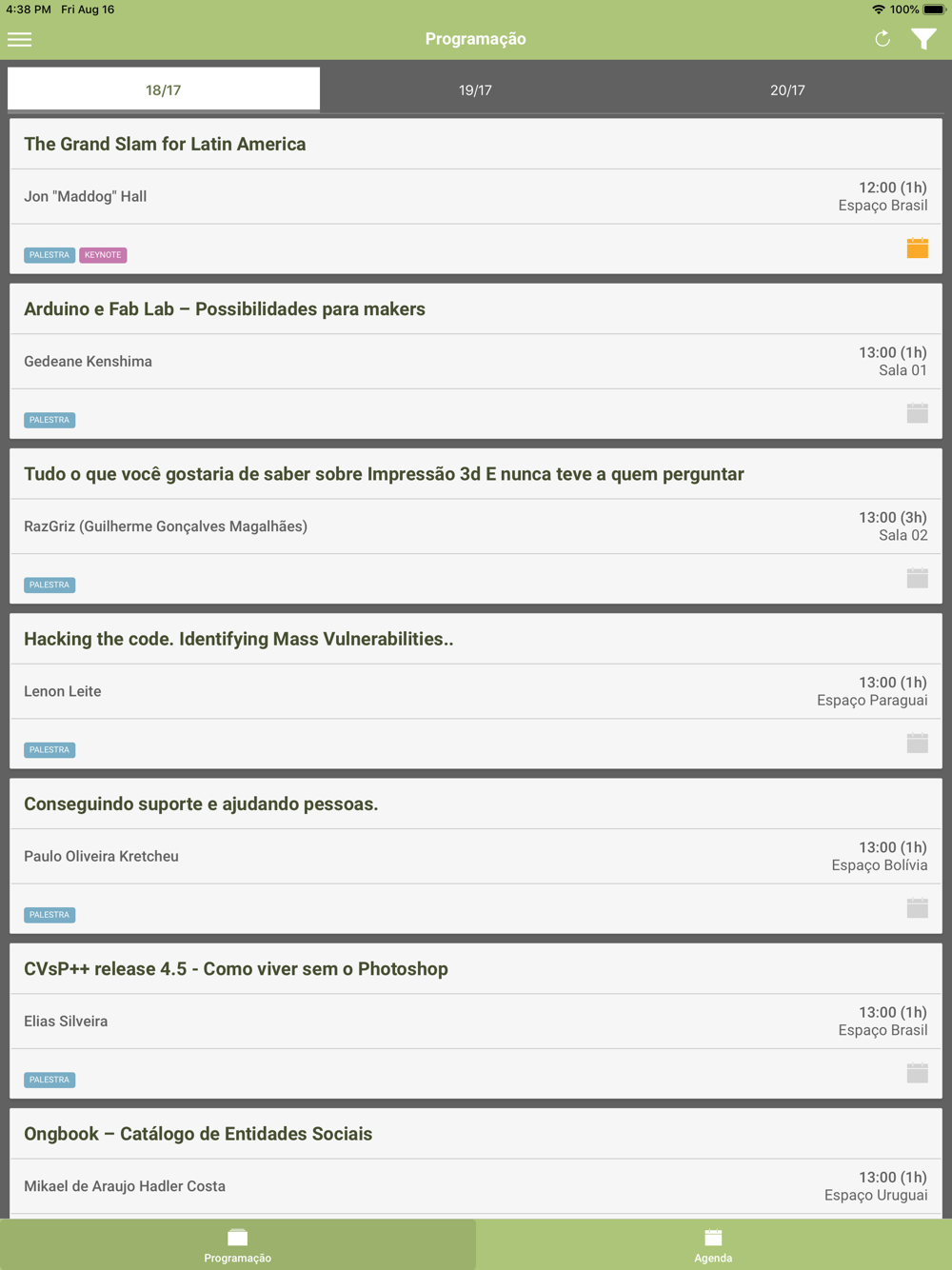 ● Consultar de grade e informações de palestras, cursos e workshops da Latinoware por horário/período e local.