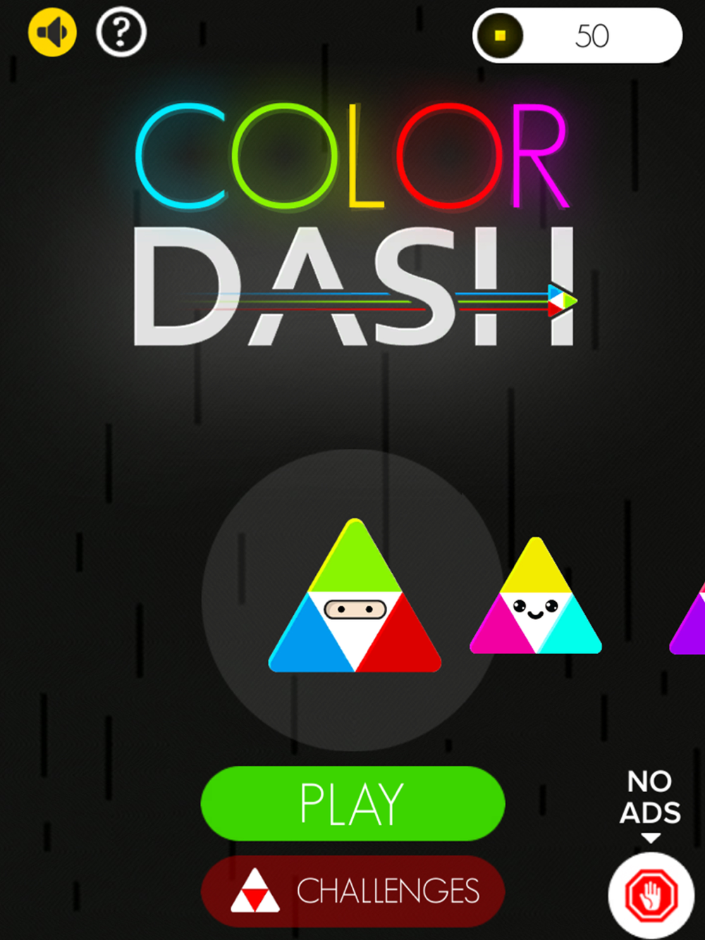 Jump into the world of colors and match them correctly to score the highest only in Color Dash. Dash the tip carefully with each matching colored obstacle and your tip will switch the color. You must follow the color pattern with each obstacle to cross it !