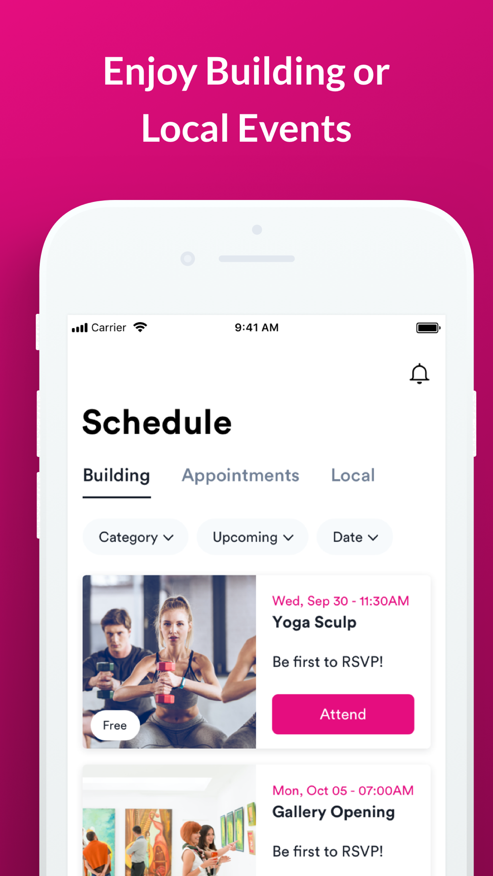 Our app has everything you need in the palm of your hands. From RSVPing for upcoming events in the building to paying rent, requesting maintenance or booking service amenities in seconds, our app lets you live a life of ultimate convenience.