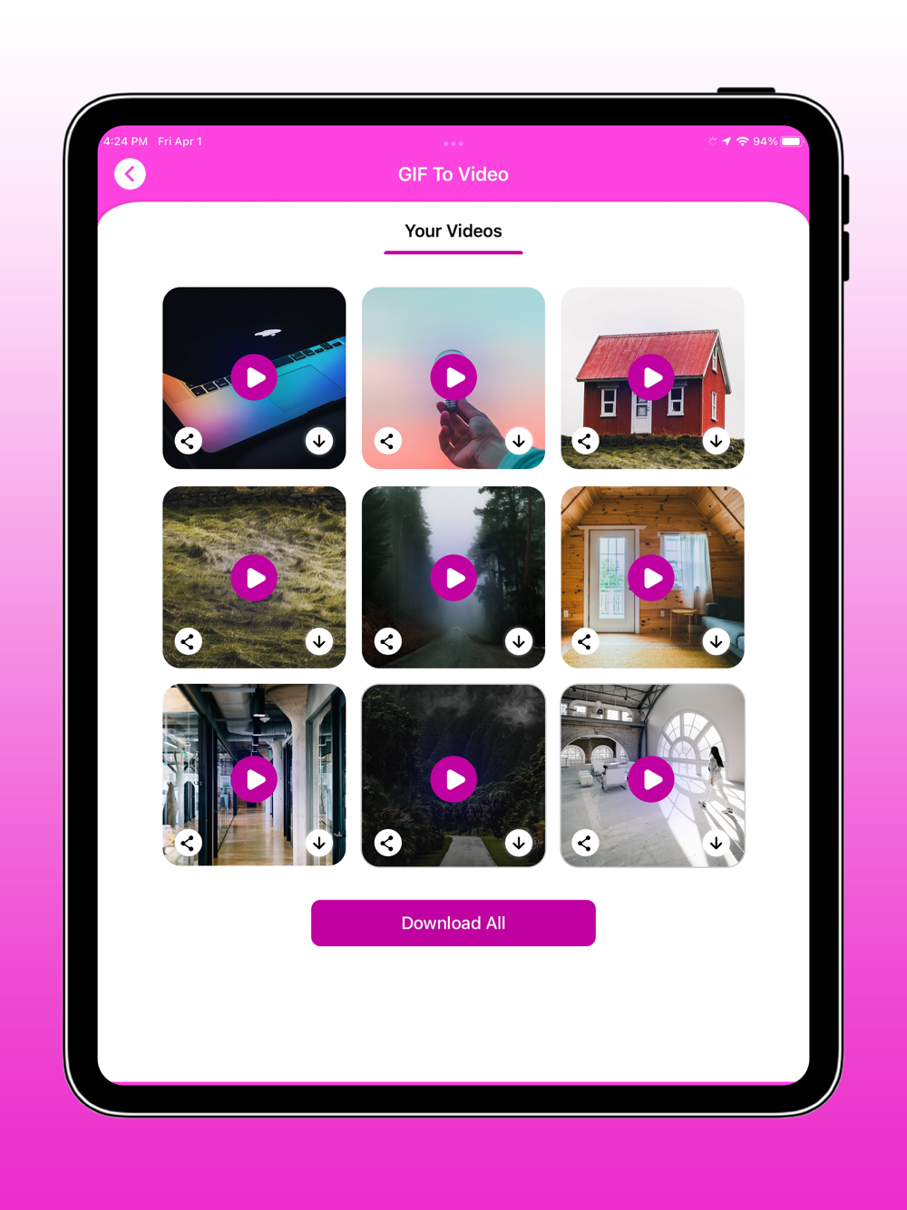 Got a favorite GIF for sharing with your friends? Don't wait! Convert it to video and share via Instagram, WhatsApp and other social networks.