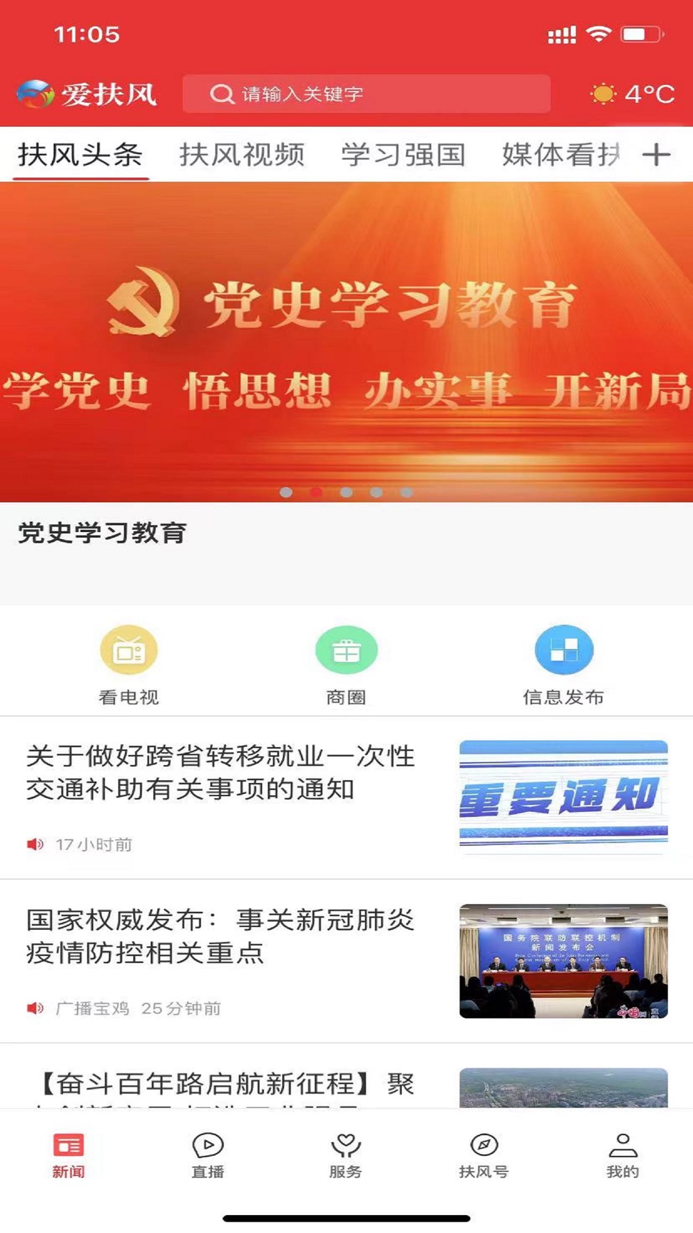 “爱扶风”手机APP作为扶风县融媒体中心主办的“新闻+政务+服务”综合平台,是权威的舆论宣传主阵地。开设了新闻、直播、电视、广播、服务、“扶风号”等栏目,整合了县域内网站、微信、微博、短视频等自媒体和部门、镇(办)、社区、村组政务服务资源。用户可通过客户端,第一时间了解扶风政治、经济、民生、服务等方面的最新动态,同时提供各种便民服务,还可参与实时互动,实现“一端在手,尽享智慧”。