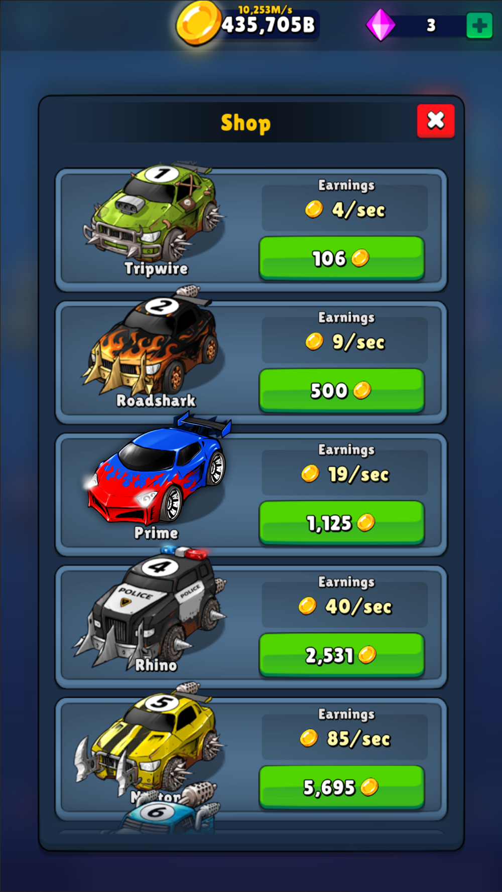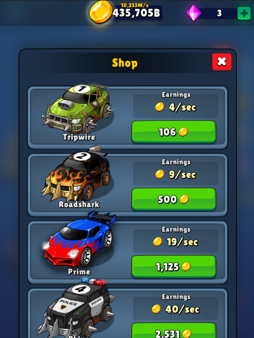 In this game, you can become the coolest collector of unique battle cars! All you need is to merge cars into the coolest one, and let them battle on the risky racer track! Also, you can earn money from racing to expand your vehicle collection and become a car tycoon.