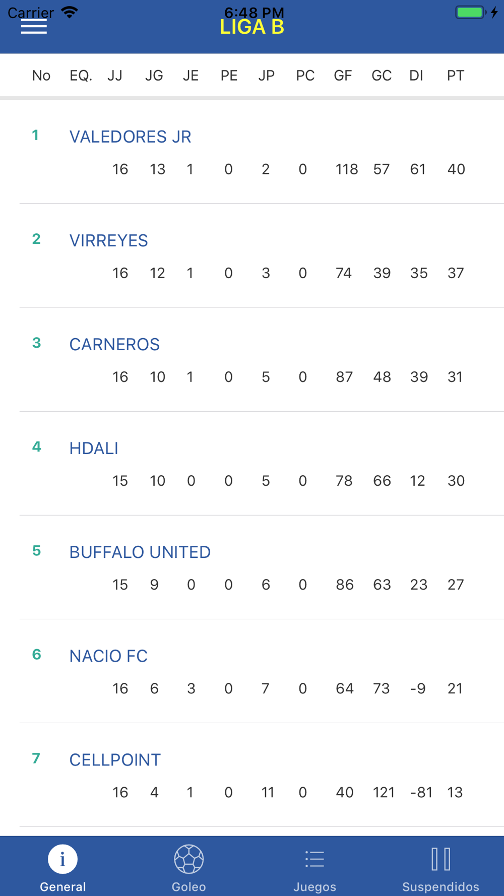 - Tabla de goleo