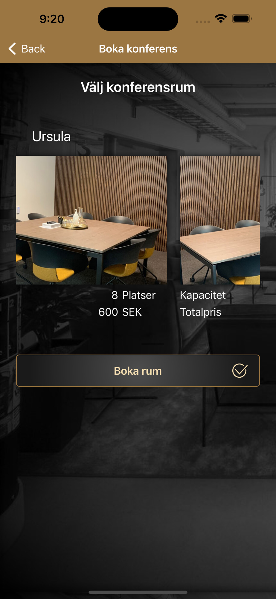 Vår applikation låter dig att boka konferensrum och handla i vår shop smidigt och enkelt.
