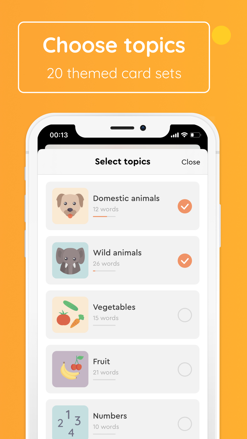 English cards for kids is an application for learning English words with kids (2-6 years).