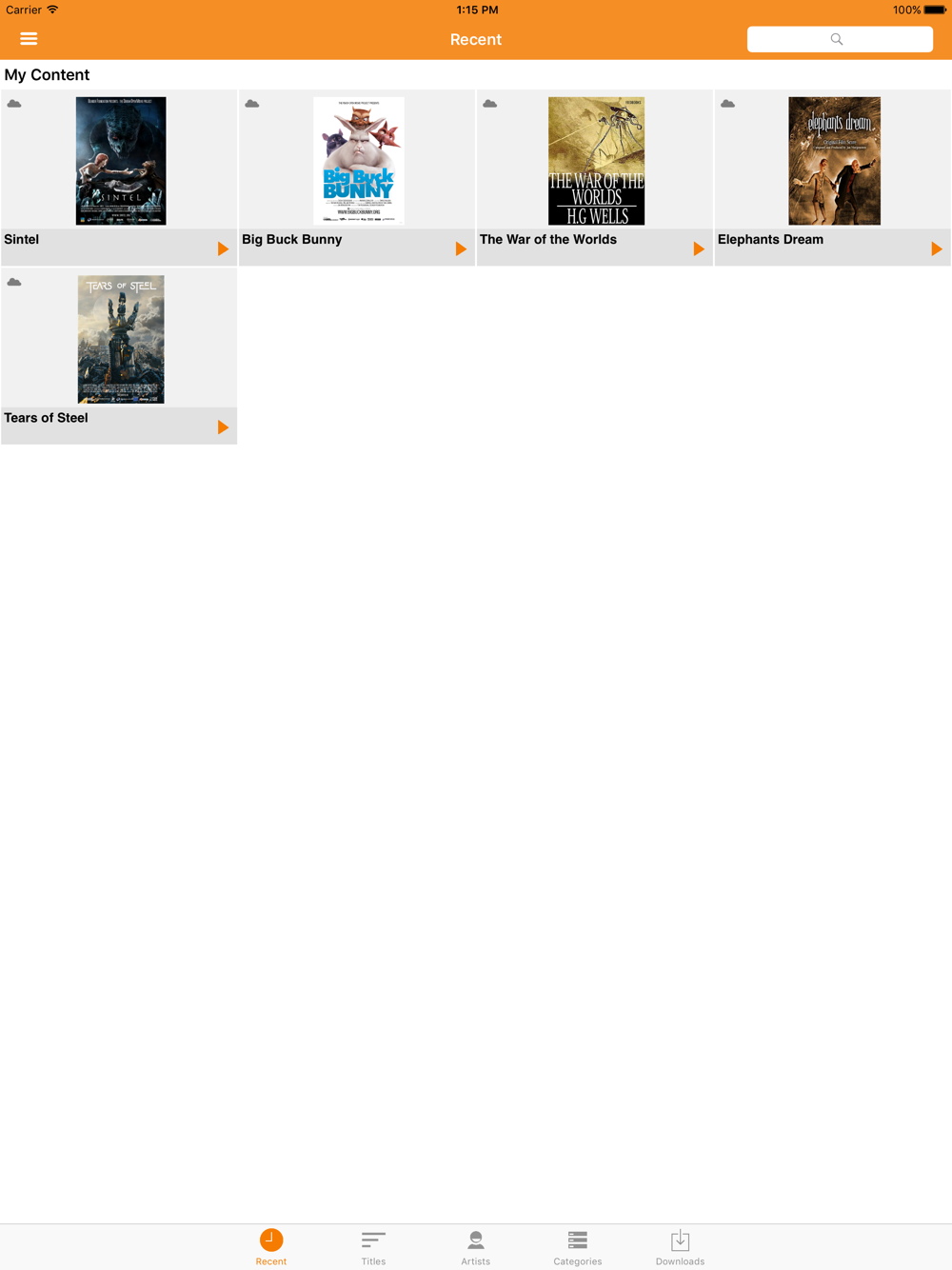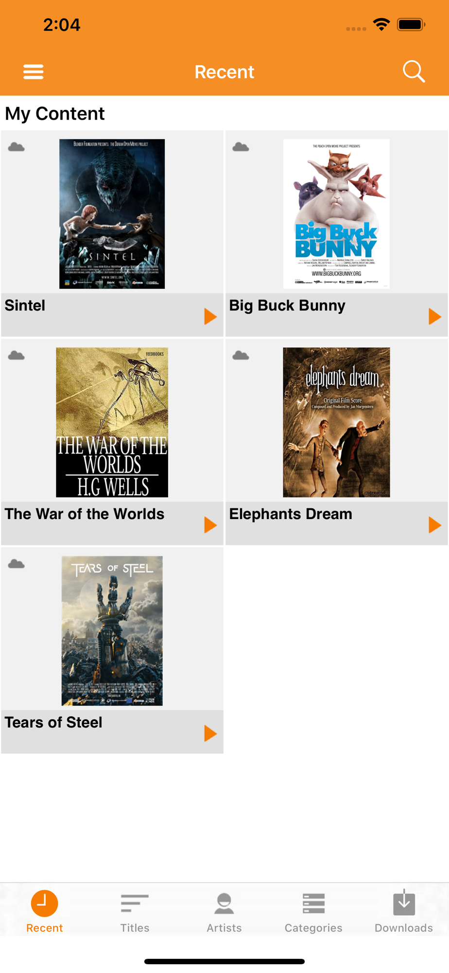 Octa Player offers full access and different views for both local and cloud based content. It keeps track of your most recently used content and syncs your activities and bookmarks with other devices you may own.