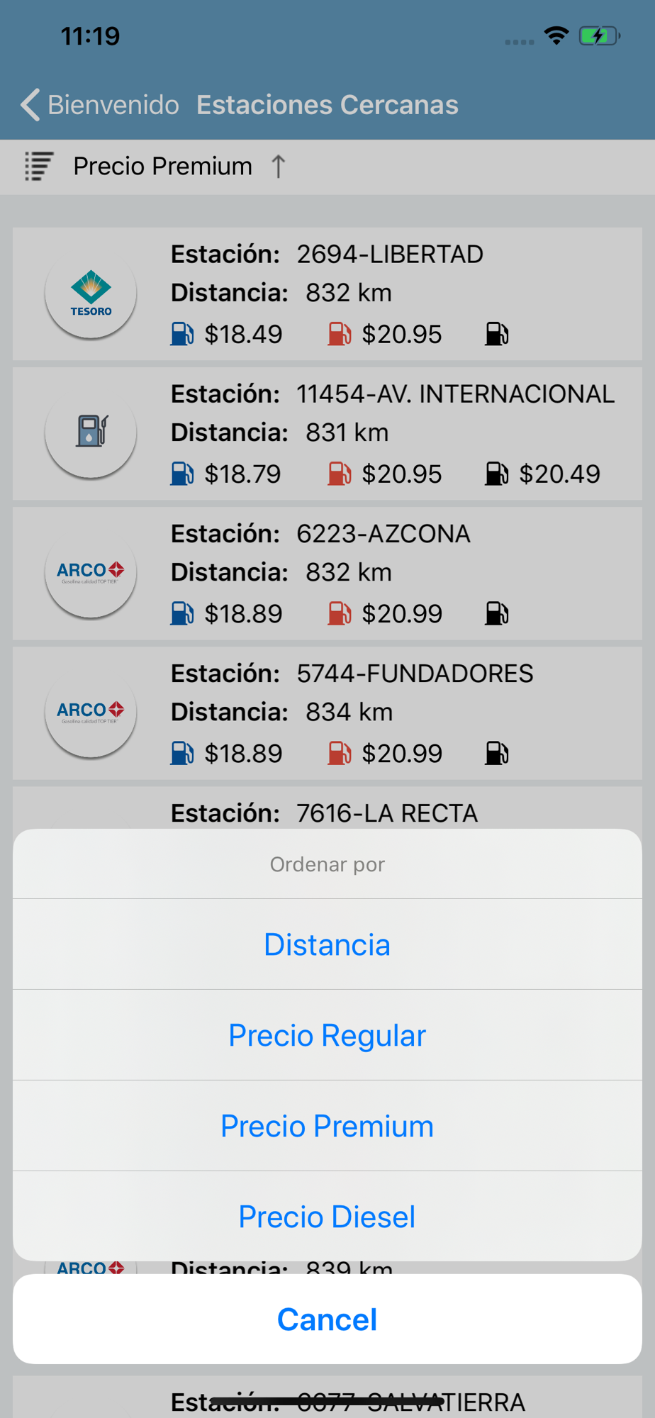 • Consulta el precio de los combustibles en tiempo real.