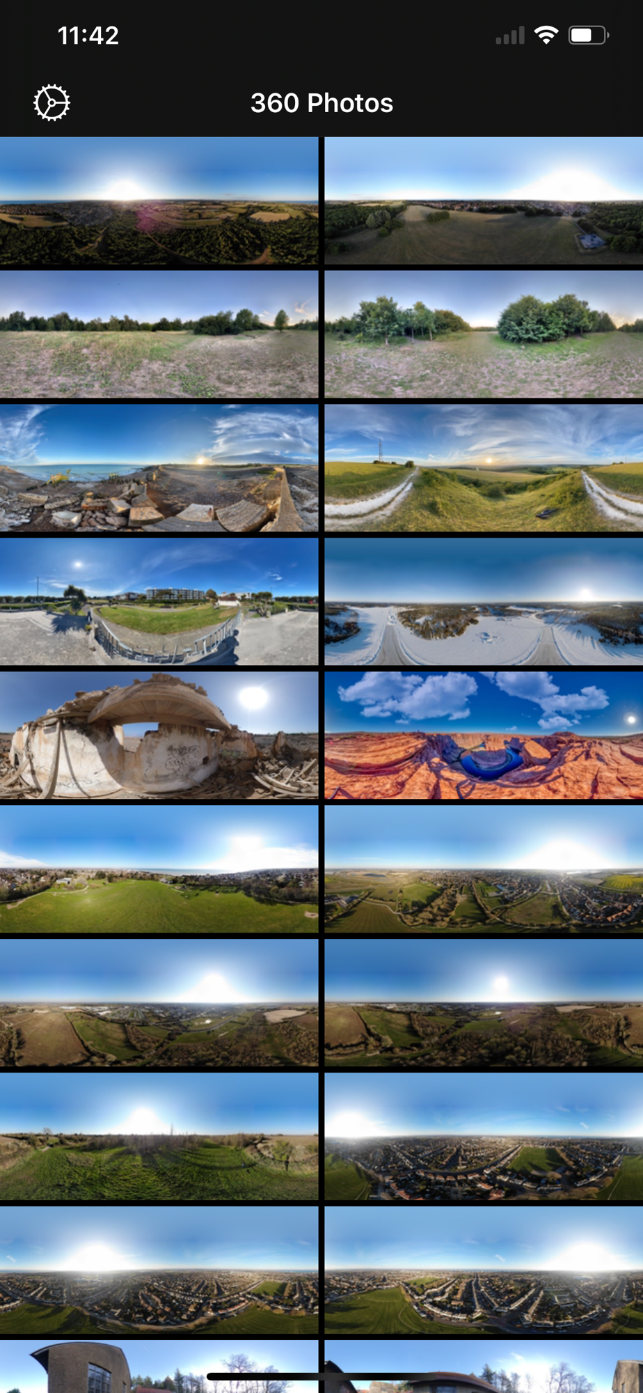 Spherium will automatically attempt to find the 360 equirectangular images saved in your photo library from 360 cameras, drones, other apps, the web or anywhere else you have saved them from. If Spherium incorrectly identifies an image as a 360 you can manually exclude it from appearing in Spherium.