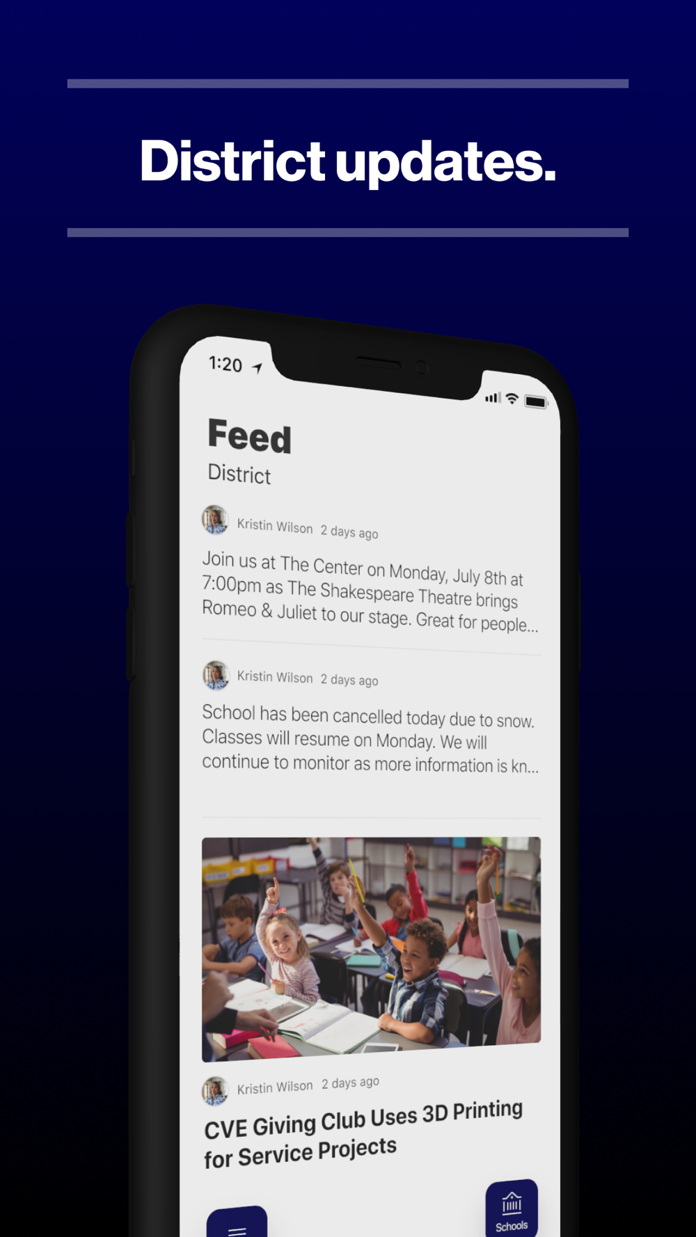 In the Live Feed is where you’ll find updates from the administration about what’s going on in the district right now. Whether that’s celebrating a student’s success, or reminding you about an upcoming deadline.