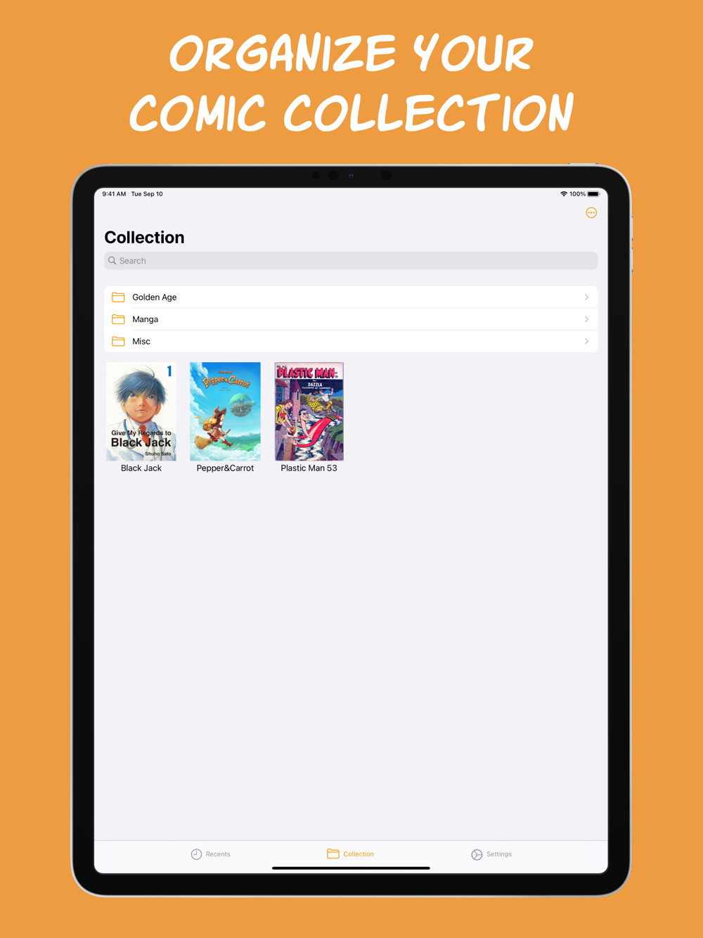 - Comics are stored in iCloud to save storage space and keep your collection in sync across devices.