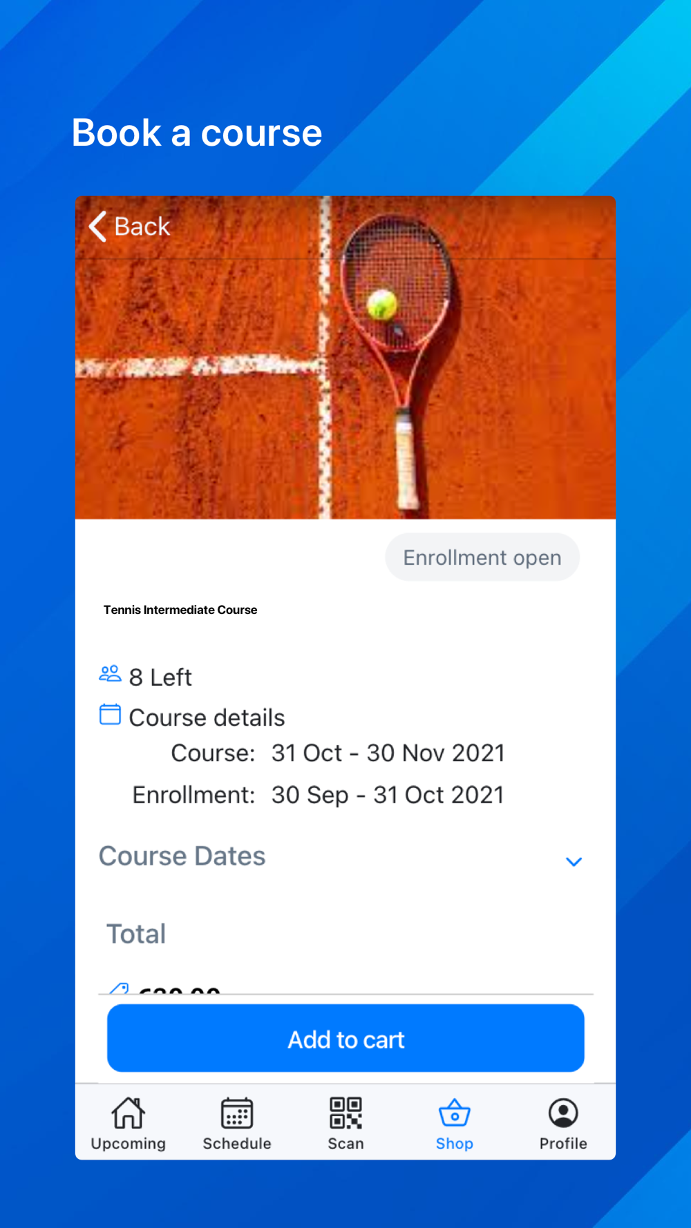 Book a class, check your upcoming bookings and the option of buying courses and subscriptions.