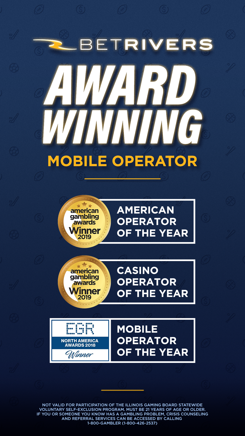 Download BetRivers today! BetRivers is licensed by the state of Illinois. We believe in responsible gaming, and integrity is our first priority. If you or someone you know has a gambling problem, call 1-800-Gambler. Must be 21+ and present in the state of Illinois. Additional terms and conditions apply.