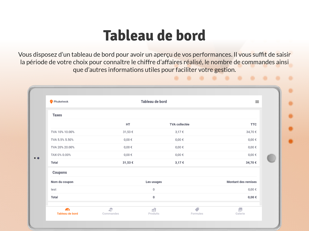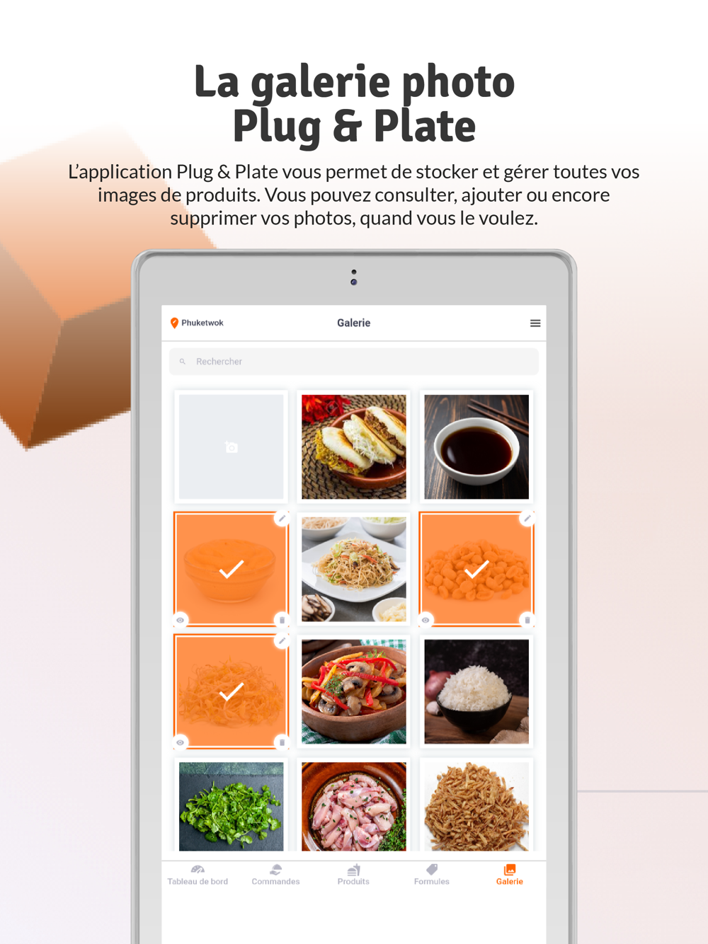 Plug & Plate est une application permettant aux restaurateurs de simplifier leur processus de commandes en ligne. Elle permet, notamment, de gérer les livraisons, le Click & Collect et les avis clients à l’aide d’une plateforme unique qui dispose des fonctionnalités suivantes :