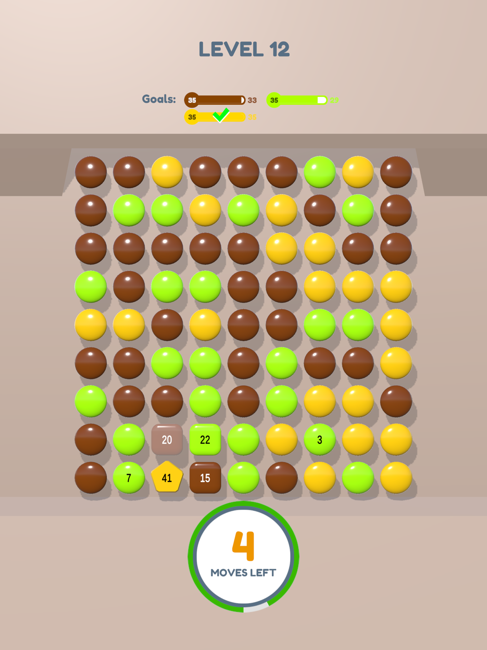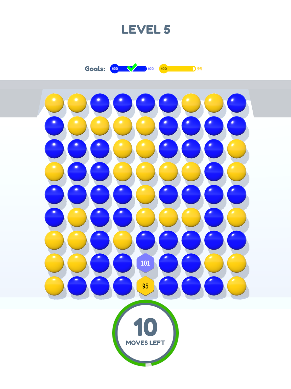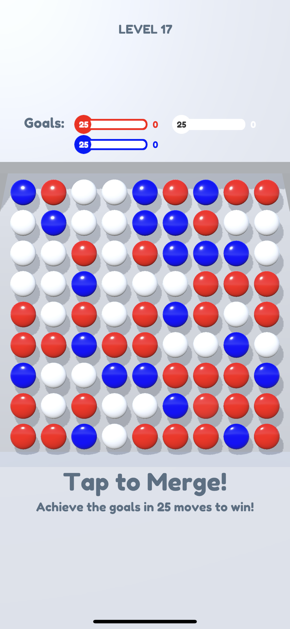 Tap to merge items of the same color! Earn points with each merge - and don't run out of moves!