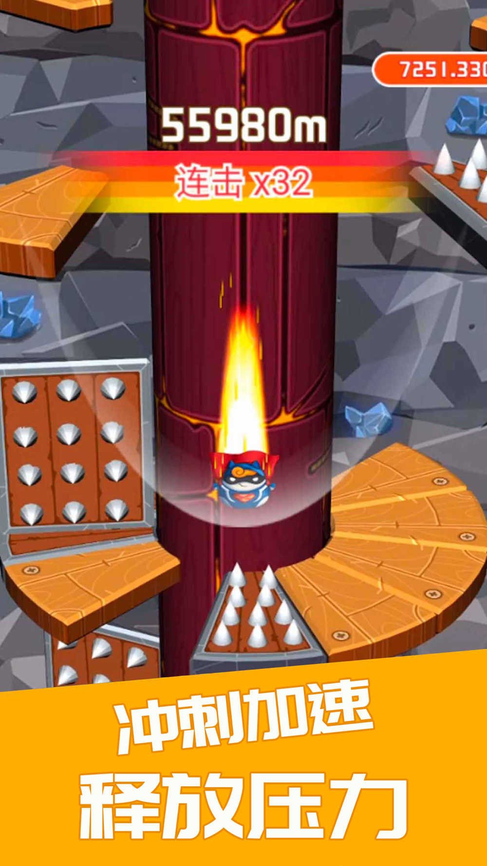 遇到难关可以消耗金币冲刺,角色像流星一样冲破层层关卡;