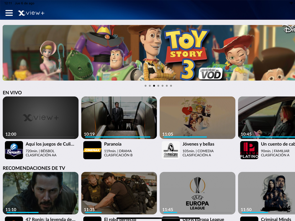 Xview+ es la nueva plataforma de Video Megacable con una interfaz intuitiva y totalmente renovada para disfrutar tus contenidos preferidos como, cuando y donde quieras. Ofrece una librería de más de 10,000 horas de programación de series y películas de todos los géneros. Pausa un programa en vivo, reinicia un programa ya empezado, regresa tus canales en vivo favoritos hasta 48 hrs. y graba hasta 150 horas de tus series o películas preferidas de una forma más intuitiva y fácil.