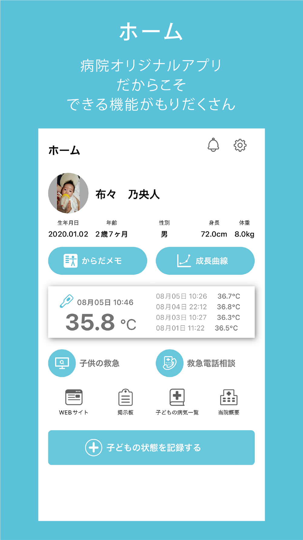 このアプリは病院「製鉄記念室蘭病院」に通っている患者向けに提供される小児科情報提供アプリです。会員登録を行っている方のみ利用可能です。