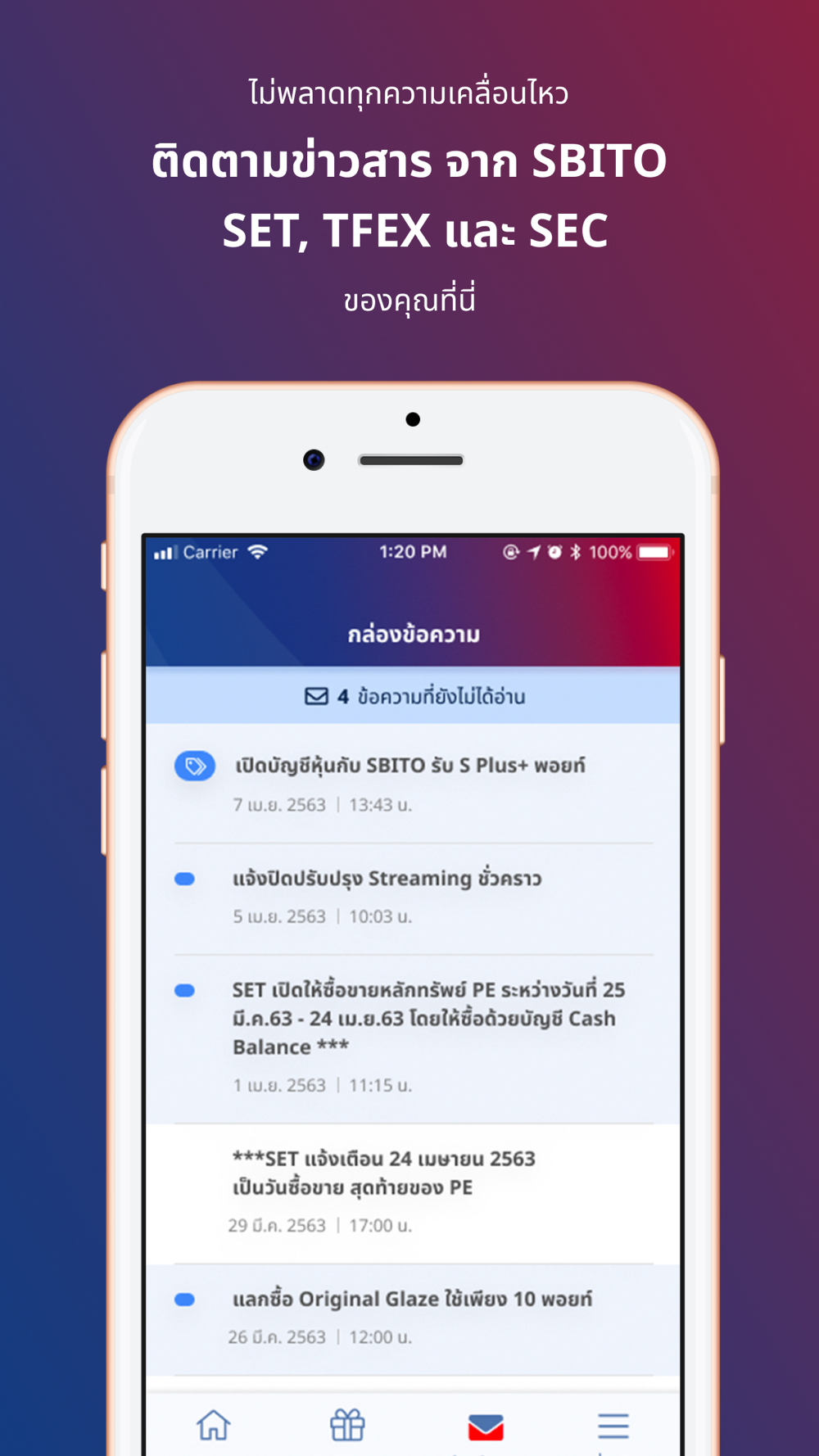 มากกว่านั้นยังเพิ่มความสะดวกสบายแก่ลูกค้านักลงทุน ที่สามารถอัพเดทข่าวสารการลงทุนและโปรโมชั่นที่น่าสนใจจาก SBITO ง่ายๆ ผ่านแอป SBITO