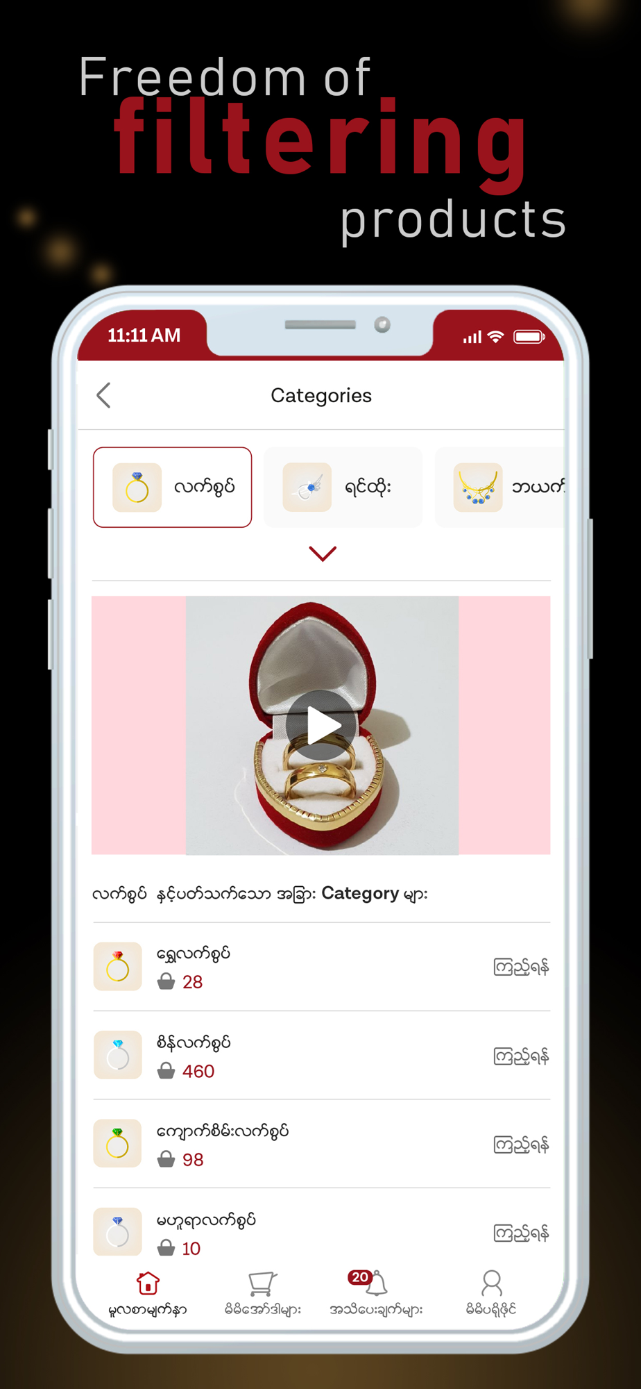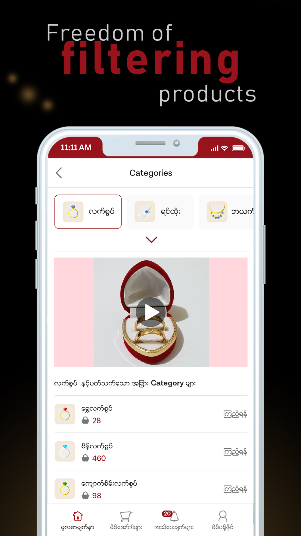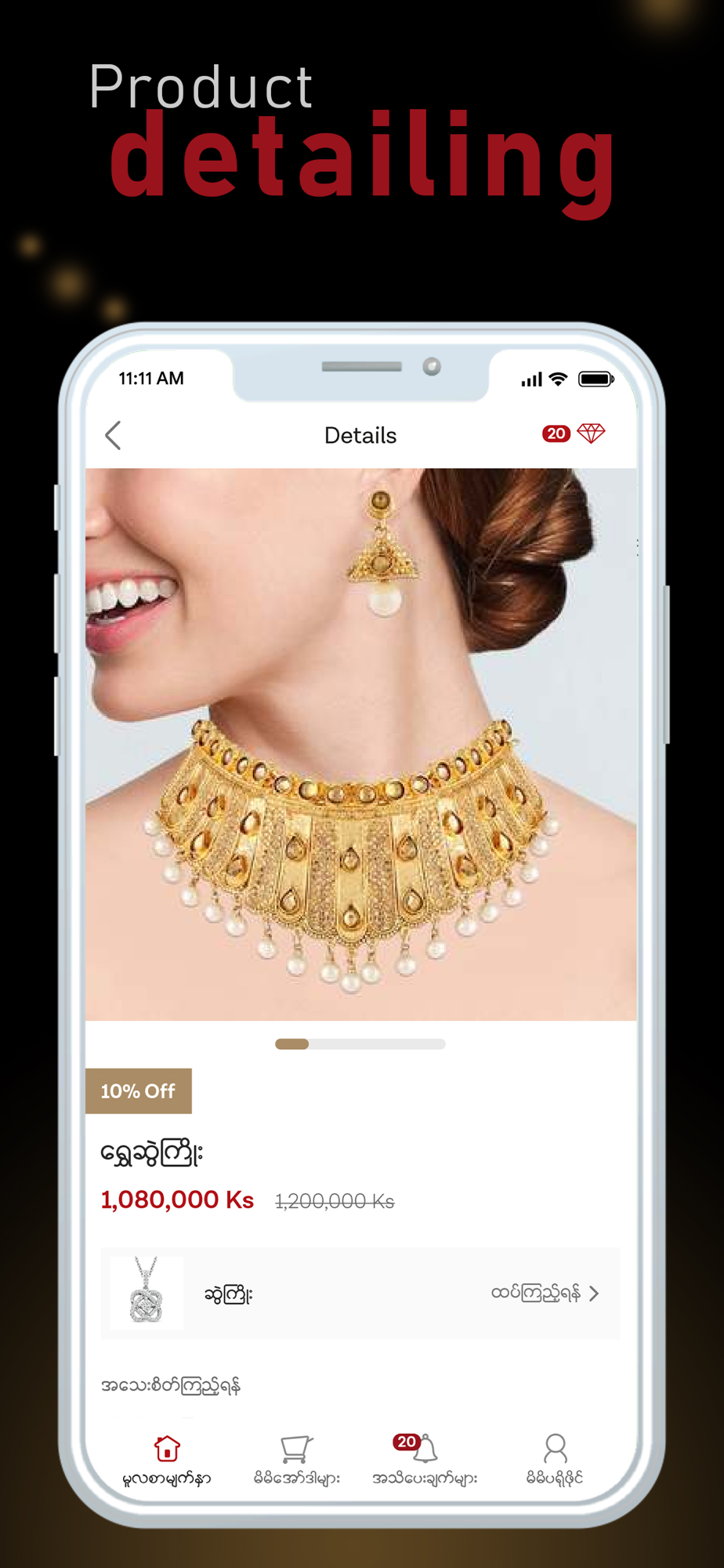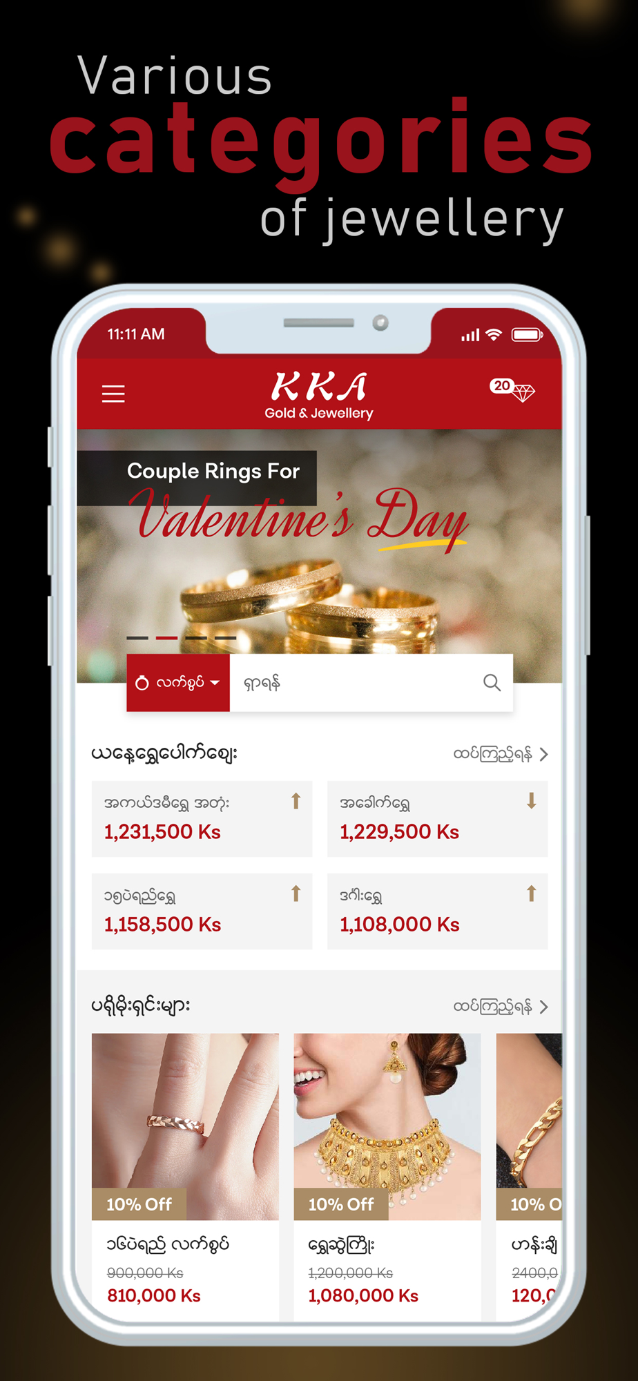 KKA Gold is a well known Gold and Jewellery Shop from Mandalay. We are based in the second largest city of Myanmar. We house many unique designs for you to choose from. All these designs are crafted to perfection with utmost care giving you the flexibility to customize the product's gold purity and color to suit your needs.