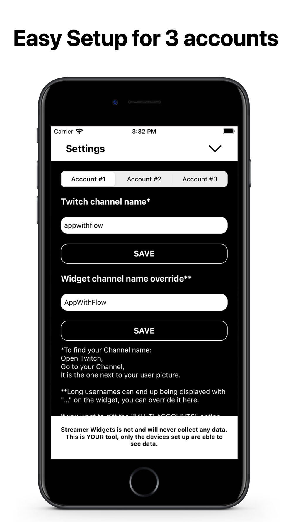 Streamer Widgets is not and will never collect any data. This is YOUR tool. It's important for me that your account stays untouched.