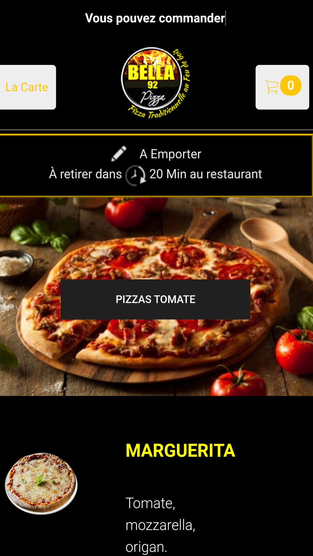 L'application Bella 92 vous permet de commander en ligne ou par téléphone via votre application. Vous pouvez consulter notre carte et choisir vos produits.