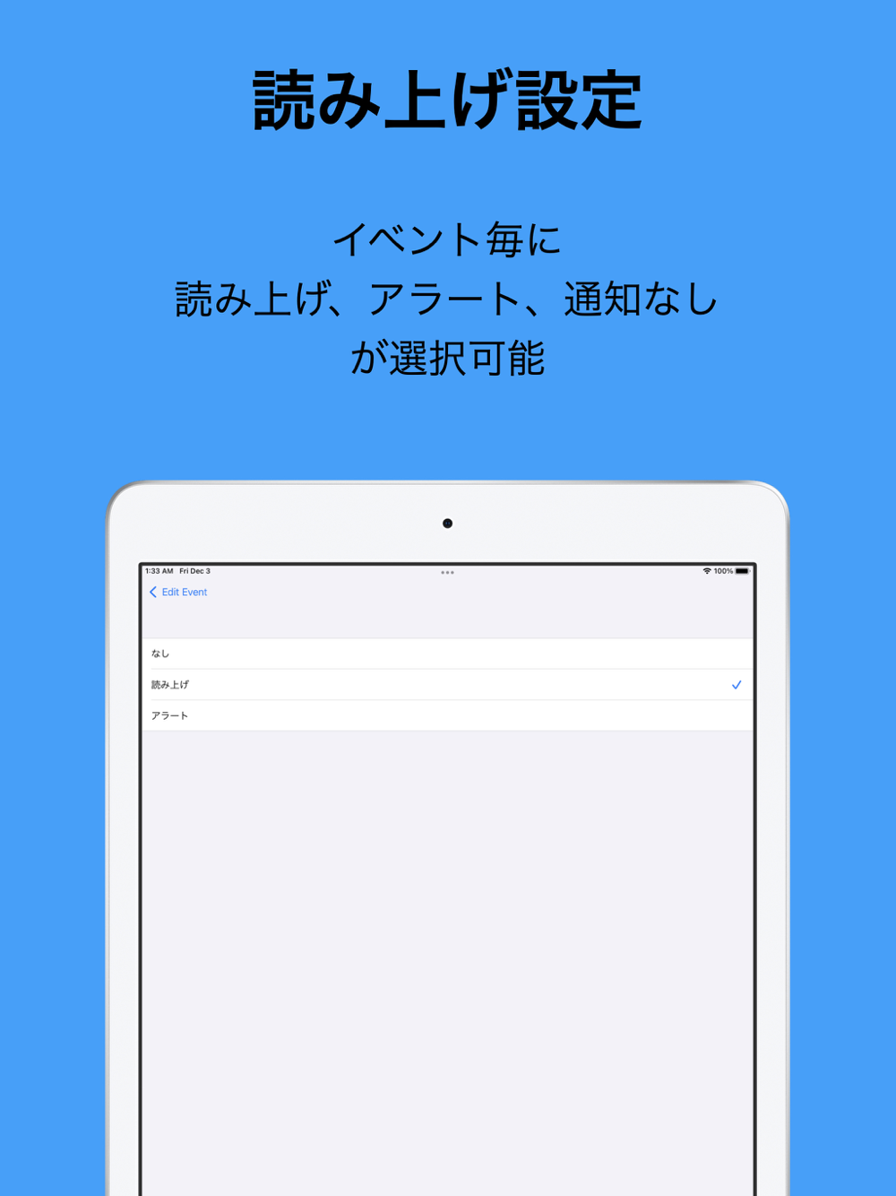 読み上げだけでなく、通知音や表示のみへの切り替えも個別に設定可能です。