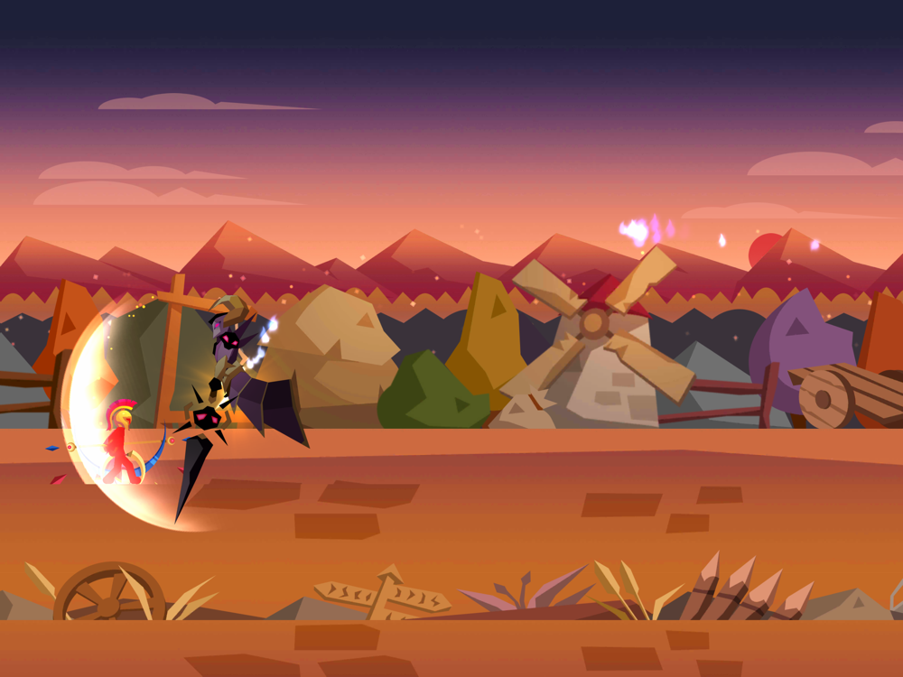The fighting game has straightforward controls. Tap and drag the arrow on the screen to view predictive shot. Once the arrow is aligned, release the touch to shoot the arrow and kill enemies before you run out of power and stamina.