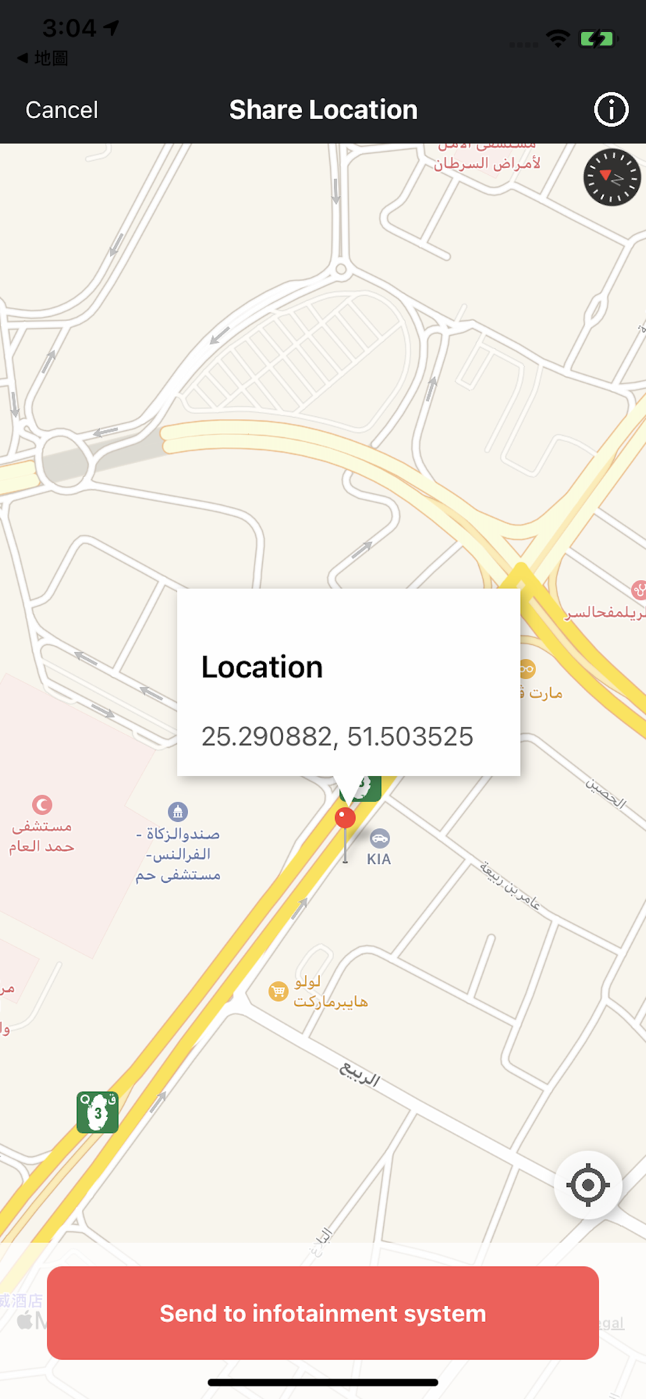 Assistant+ provides a Share Location function which you can select a place on a Map app, share it to Assistant+ and use Infotainment System for guidance.