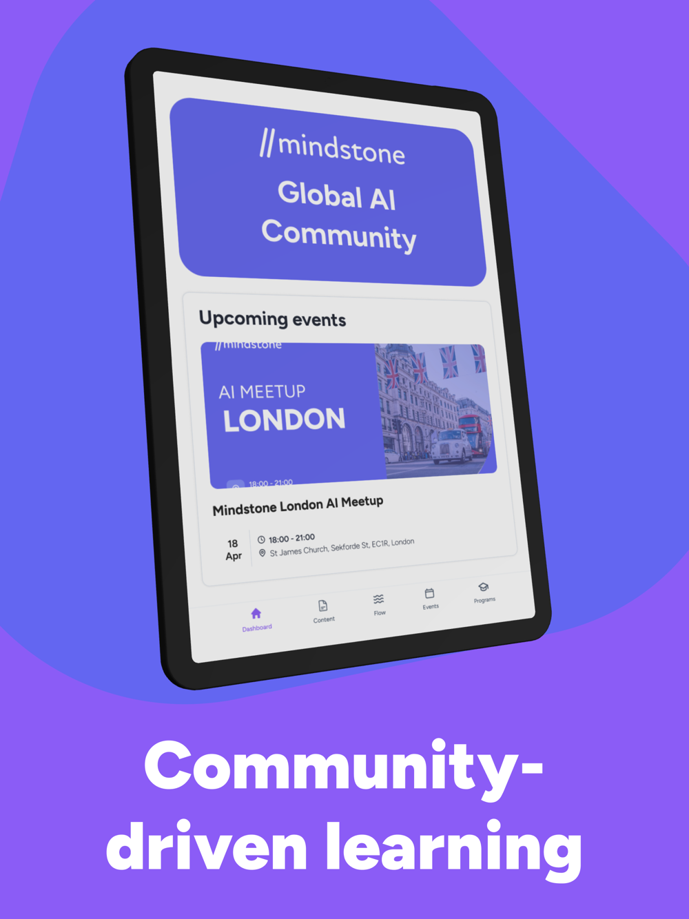 The Mindstone app is free to download, giving you access to a global community, events, and our library of over 100 practical AI talks, demos, and tutorials. With our Pro & Enterprise plans, businesses can quickly train their teams to integrate AI into their projects and impact overall business goals.