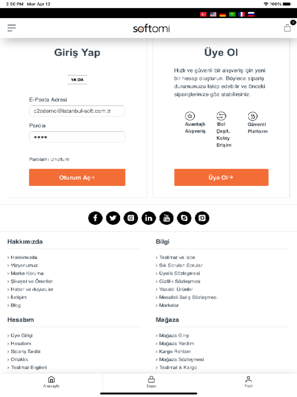 Softomi C2C Pazaryeri sistemi mobil uygulamasıdır.
