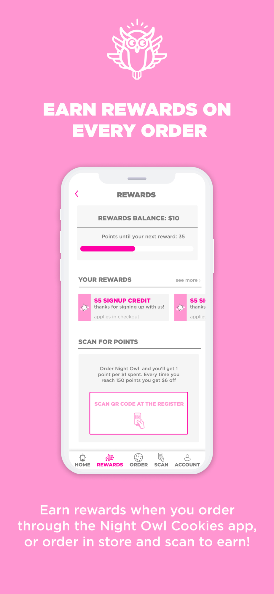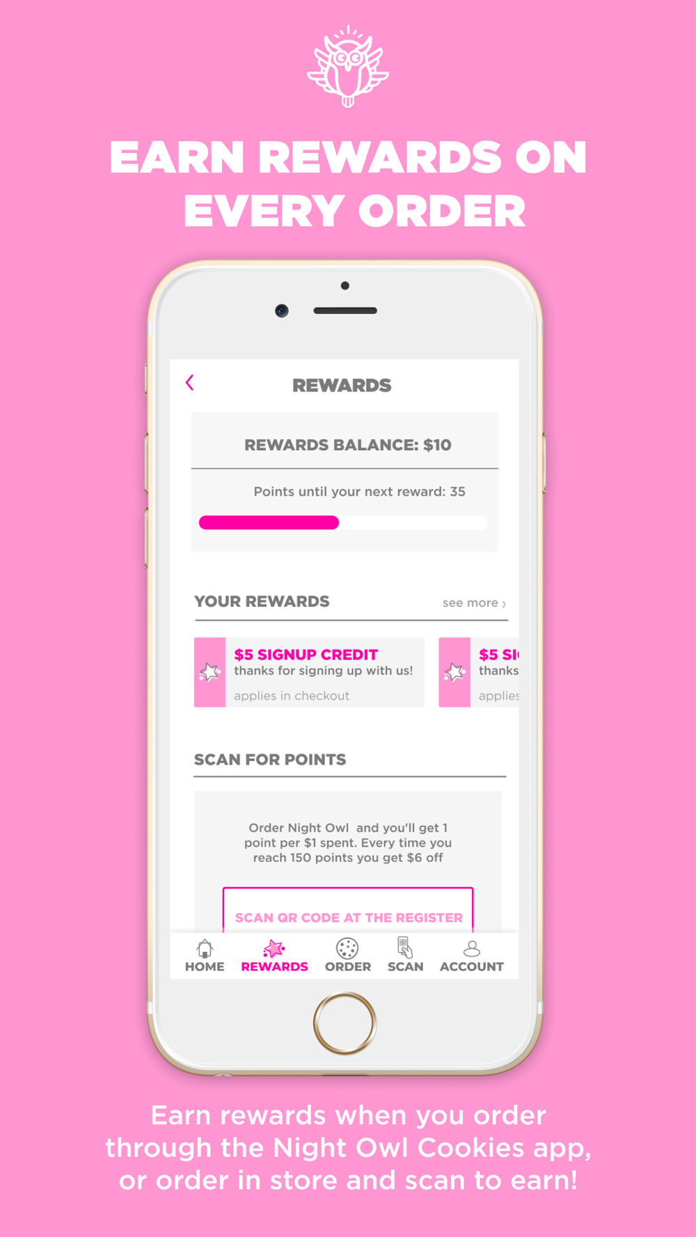 The Night Owl app is a convenient way to order for pickup and delivery! Rewards are built right in, so you'll earn points towards Cookies with every purchase.