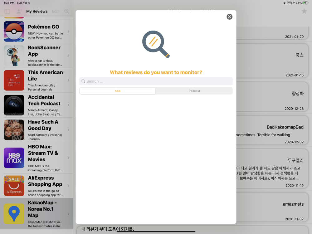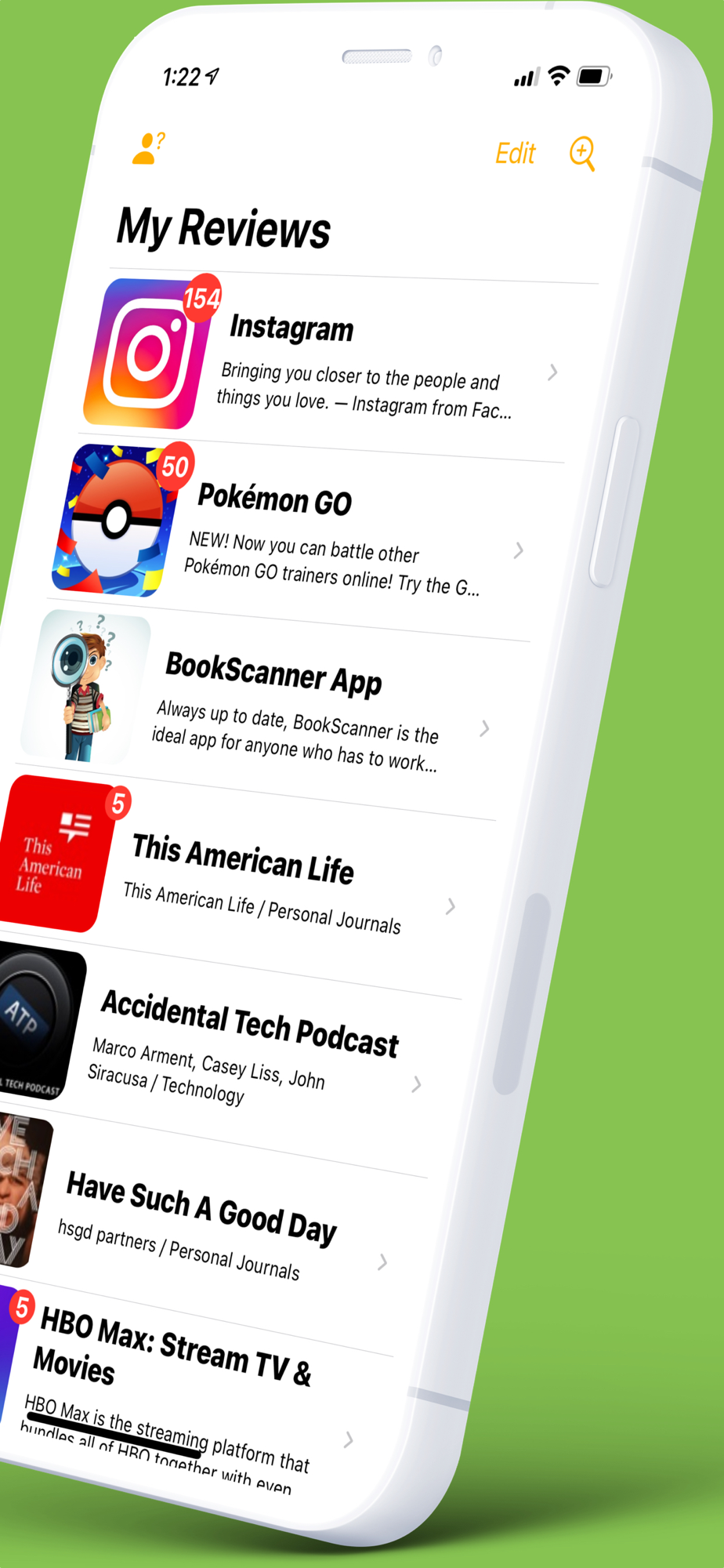 Monitor My Reviews allows developers and podcast creators to search the App Store and Podcast App for reviews. My Reviews will monitor in the background for new reviews, and alert when they are submitted. You can filter by rating, translate reviews to English, and use the sharing mechanism to show off those 5-star reviews. Add widgets to your iPhone or iPad to be reminded of recent reviews.