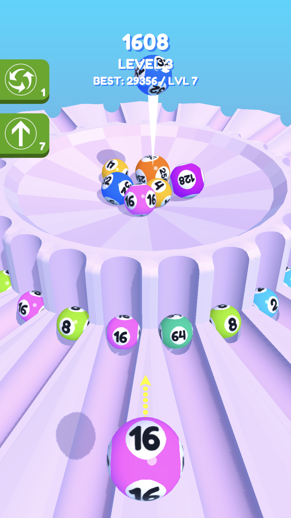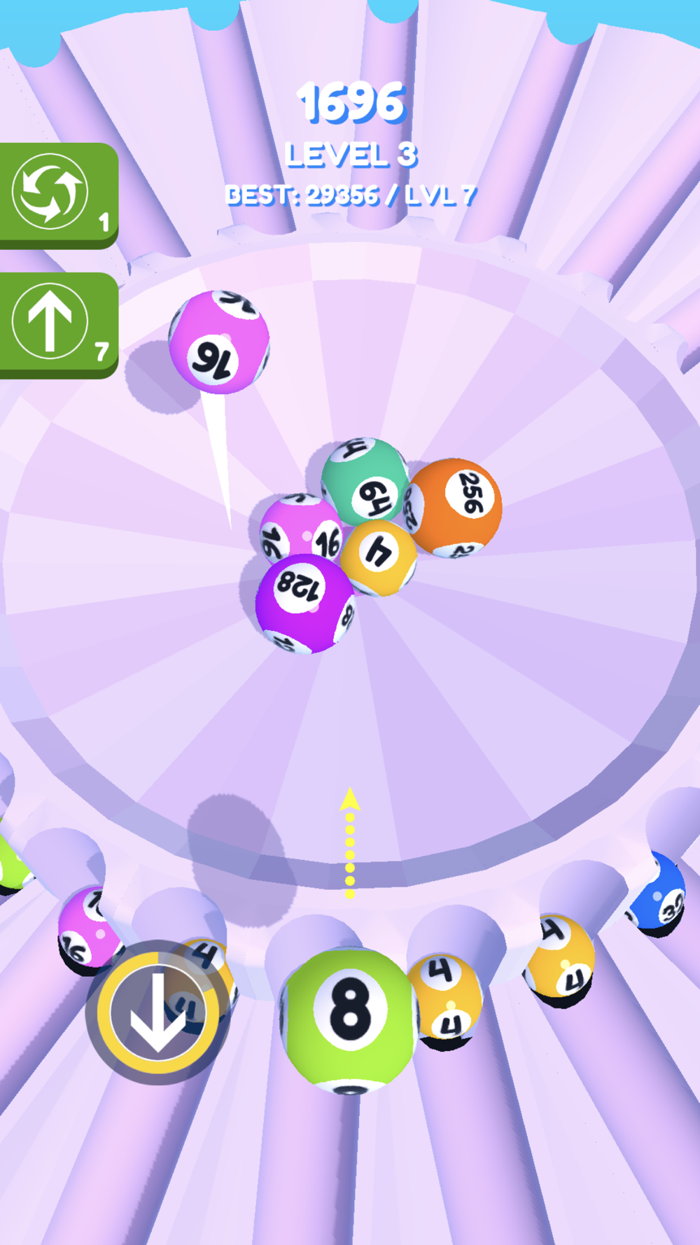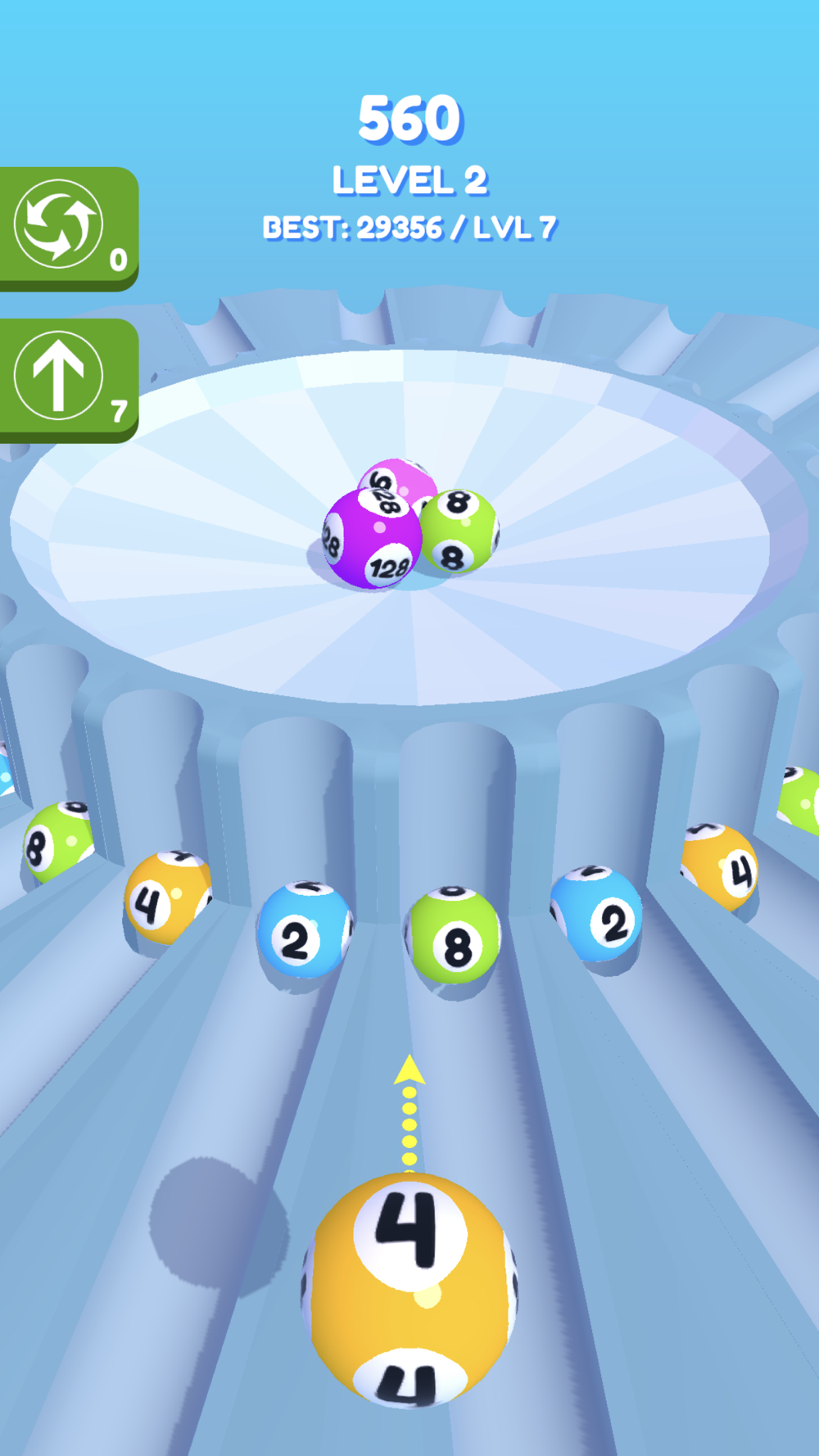 Tap to shoot the balls! Hit balls of the same color to merge them.
