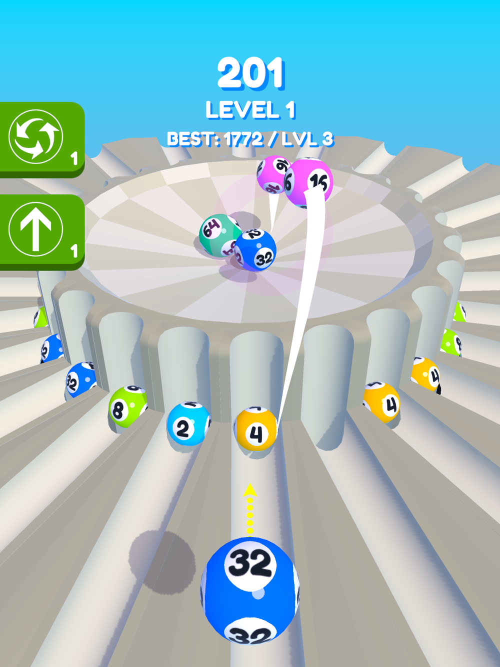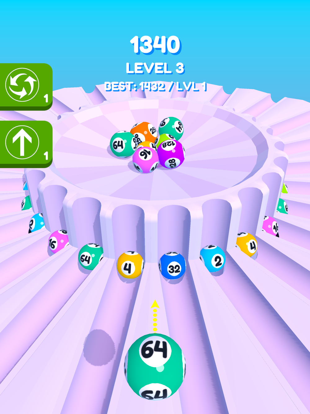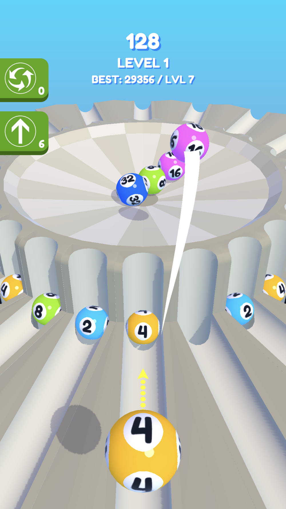 Tap to shoot the balls! Hit balls of the same color to merge them.