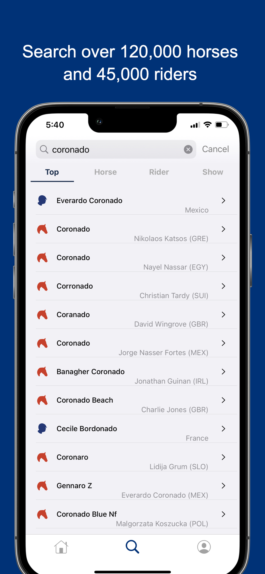 Get statistics for over 110,000 horses and 40,000 riders from around the world.