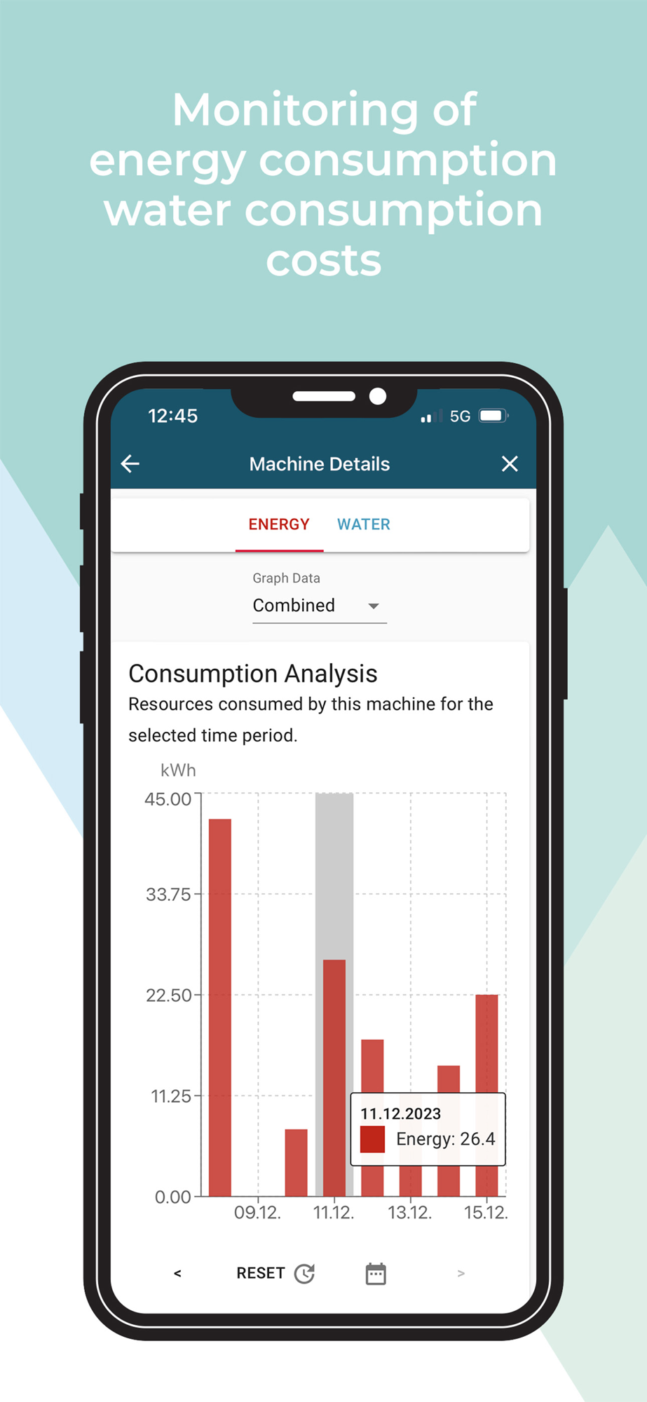 The consumption of electricity, water and cleaning agents and the corresponding costs are clearly displayed.