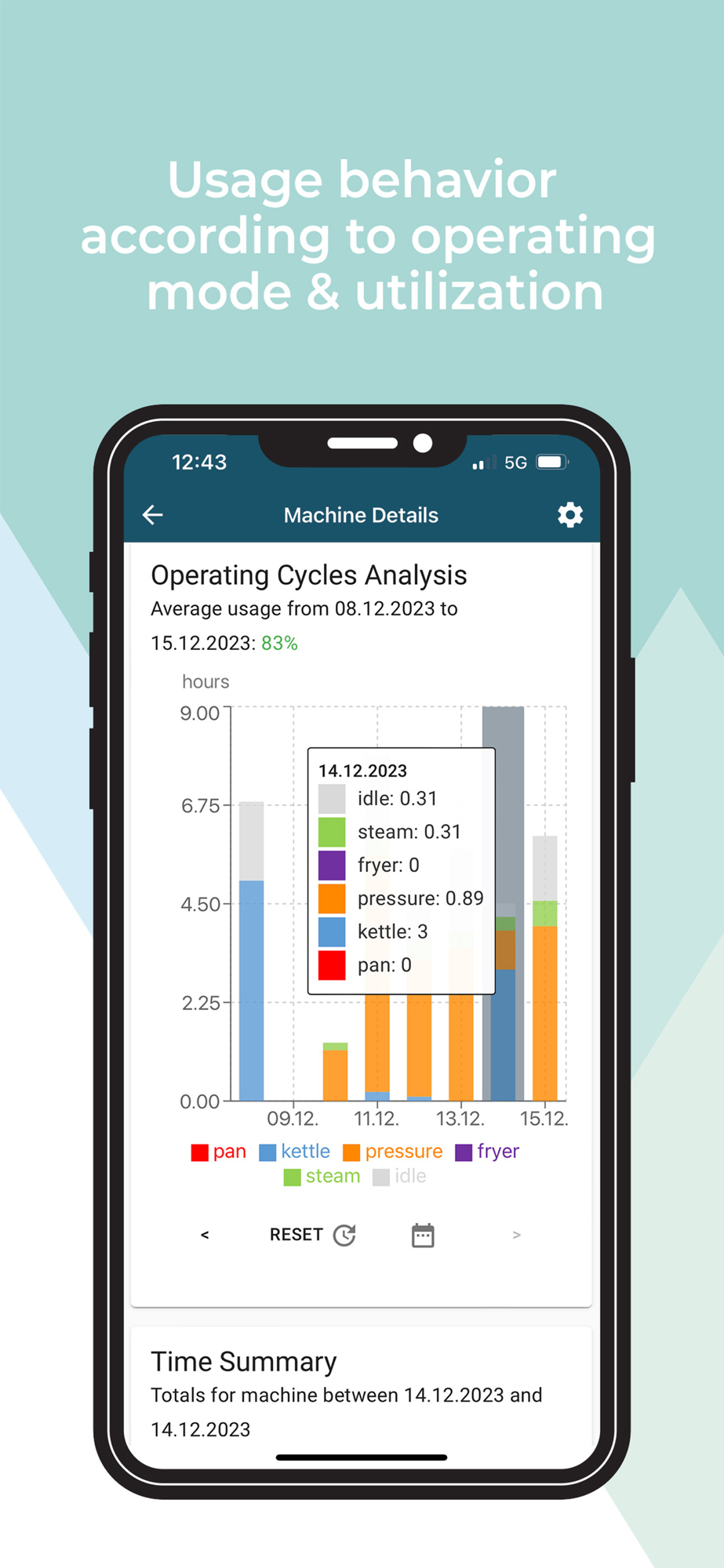 You receive information about your appliance's downtimes and active operating times. Evaluate the operating modes to optimize cooking processes, increase efficiency and thus save money.