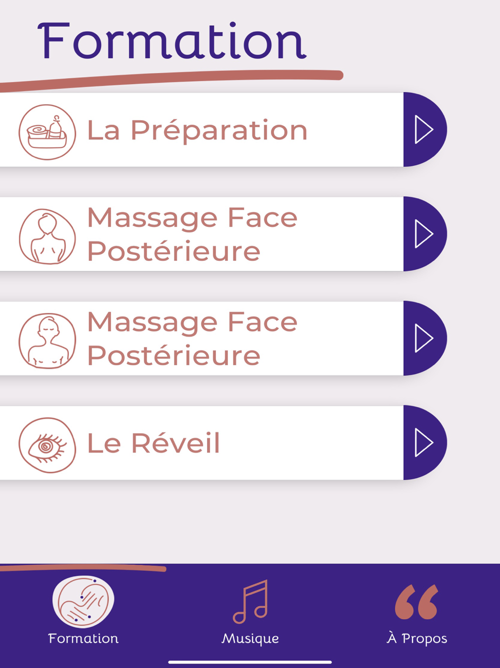 Notre application vous propose également une musique d'ambiance lors de la réalisation de vos massages