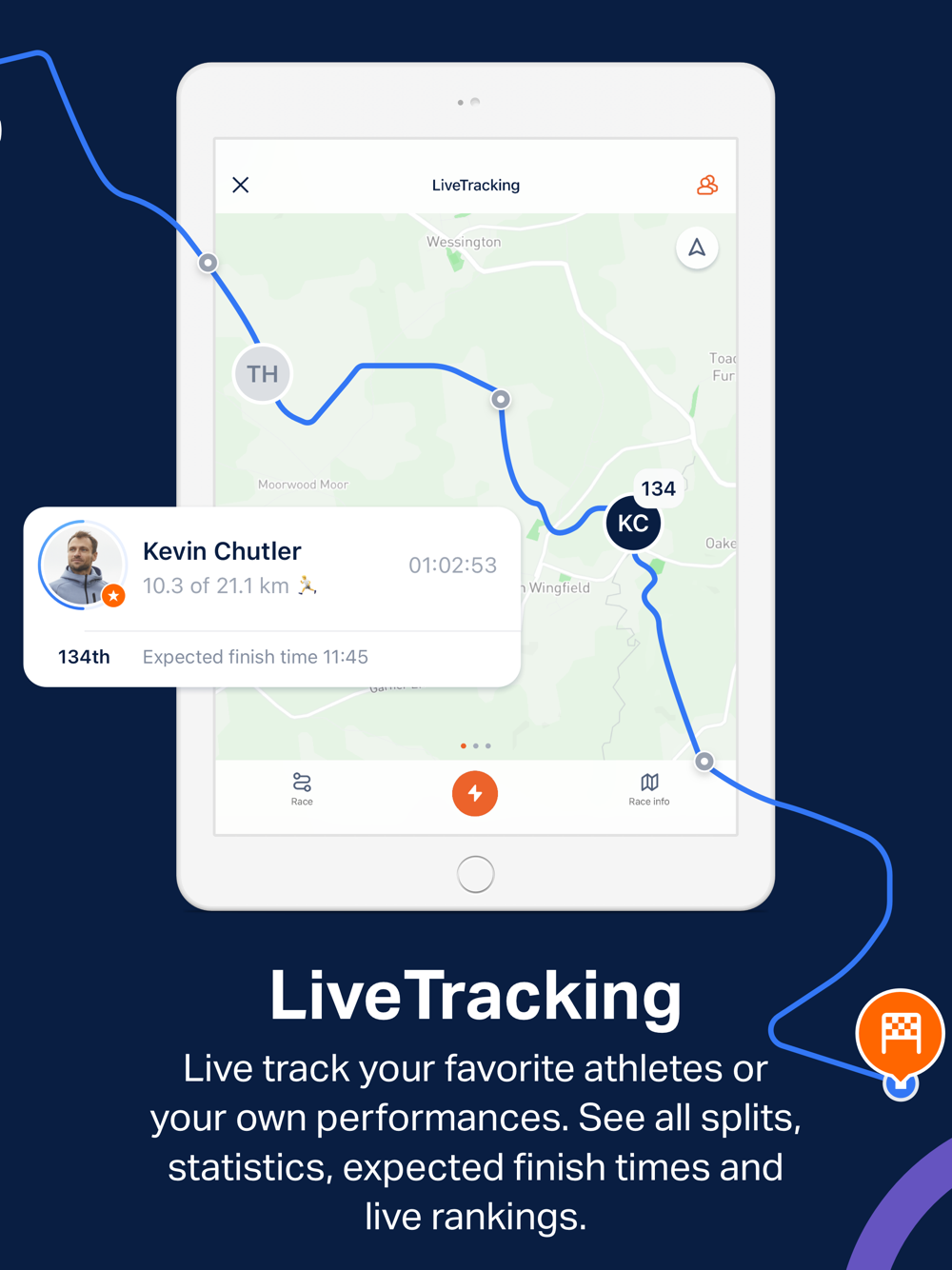 With the LiveTracking feature you will not miss a thing during the event. You can see exactly where your favourite athlete is running, how many kilometres has been covered, how many kilometers to go, the expected finish time and his or her current position in the rankings.