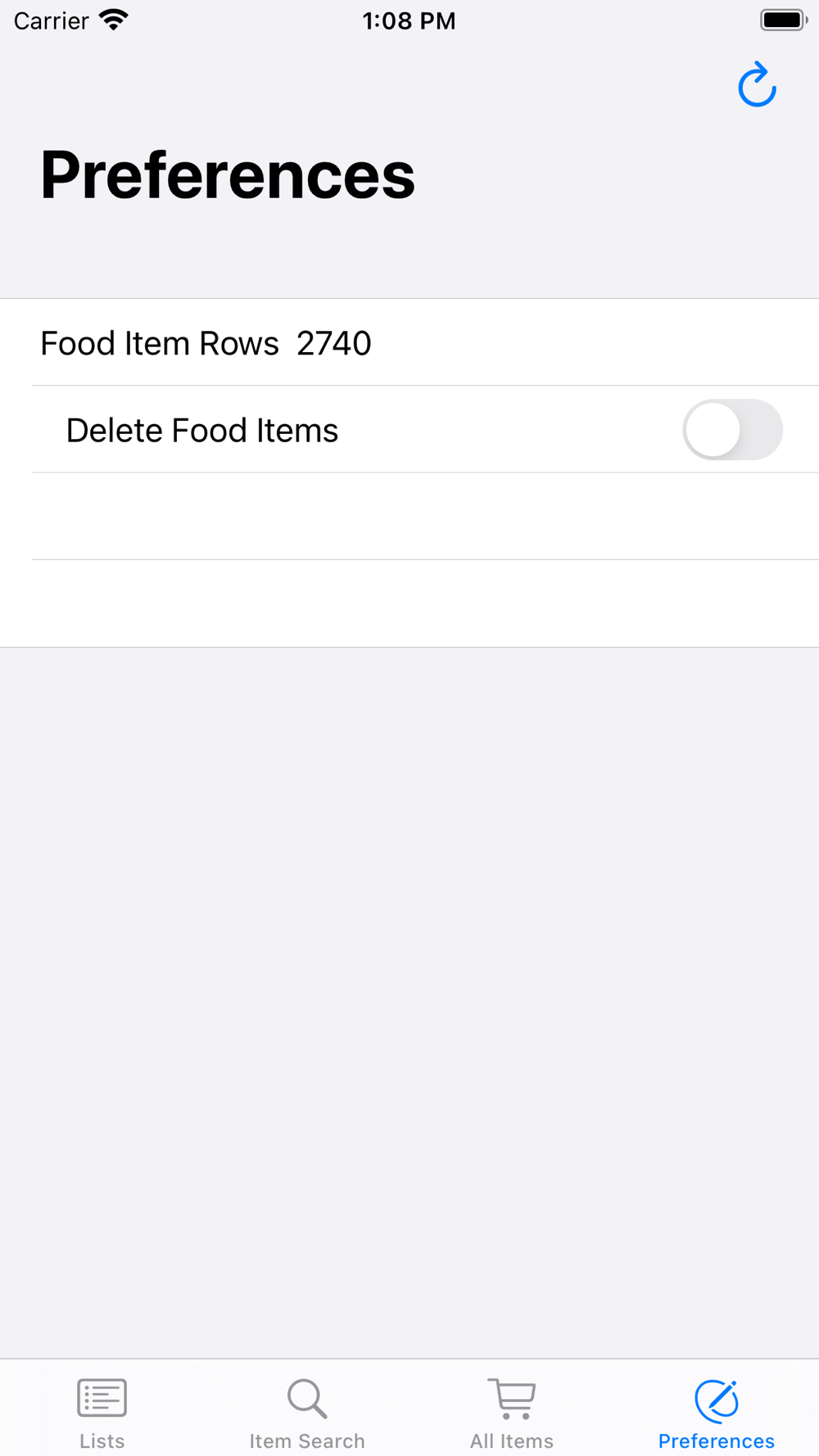 It comes preloaded with over 2,000 food items to save typing. All new Items are added automatically. Lists can be reused and maintained over time.