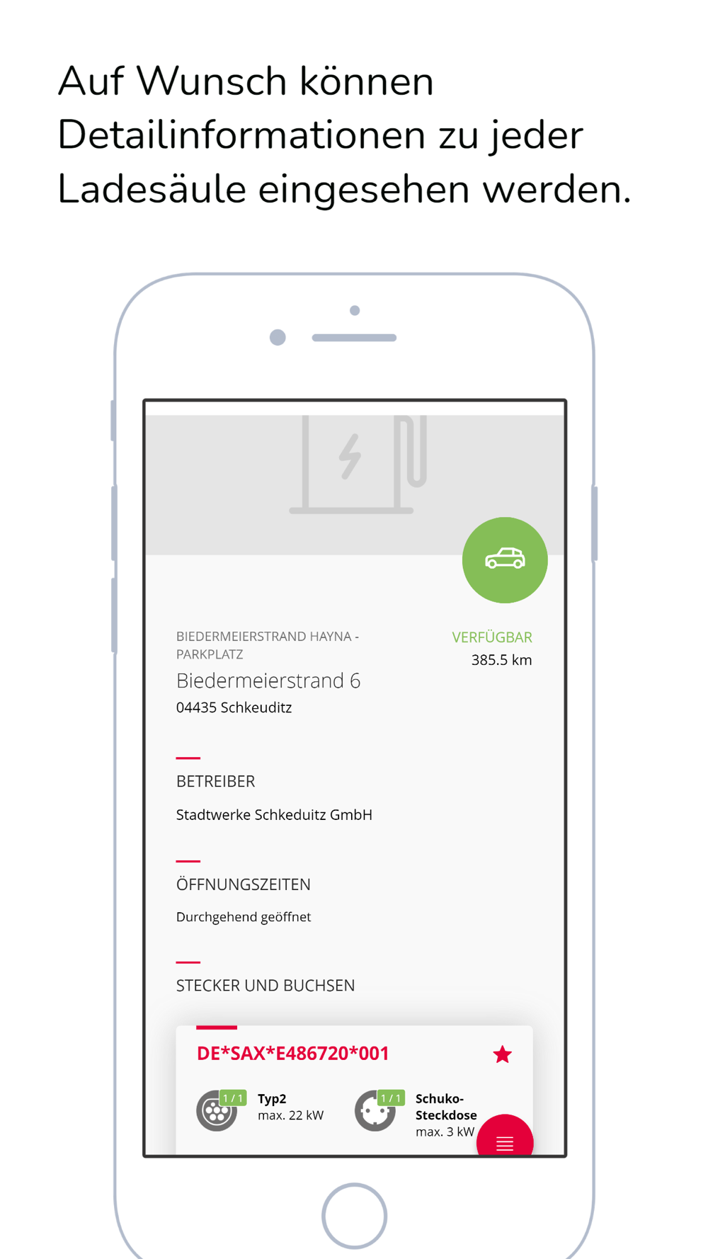 Mit der Saxcharge App könnt ihr bequem an einer unserer Ladesäulen der Stadtwerke Schkeuditz GmbH 100% Ökostrom laden. Aber auch bundesweit zeigt euch die App eine Vielzahl von Ladepunkten unserer Rooming-Partner zum Laden eures Elektrofahrzeuges an.