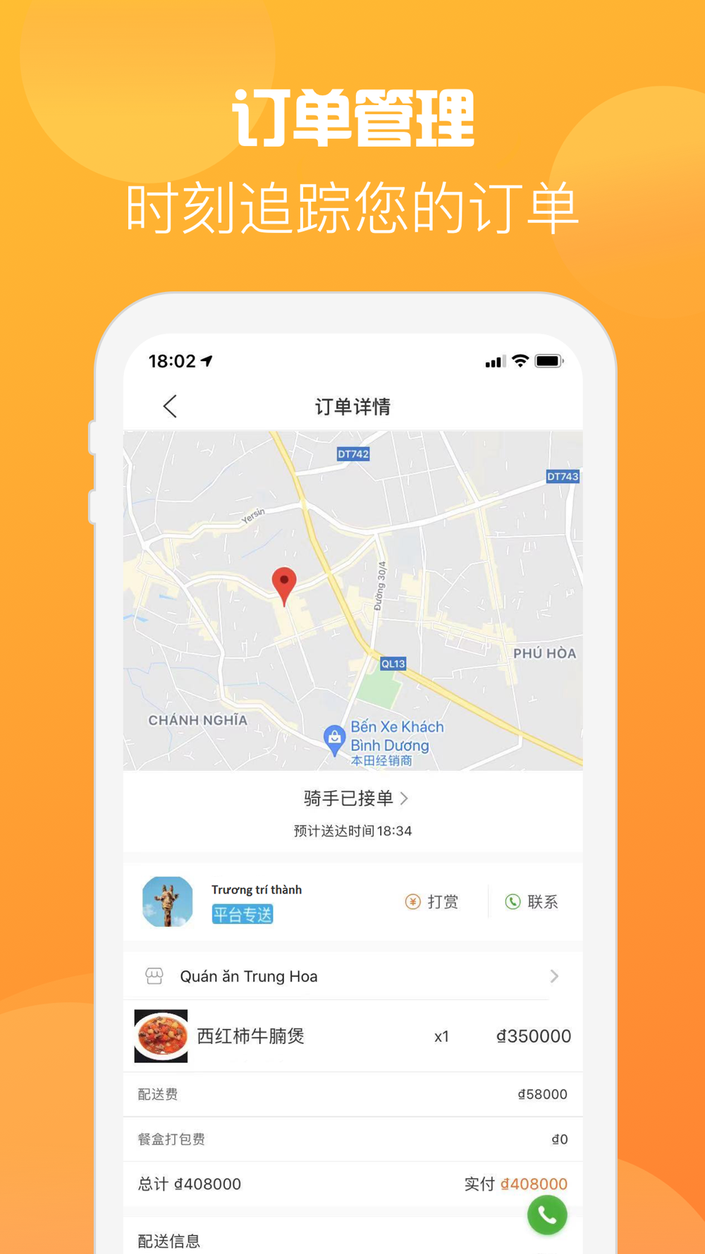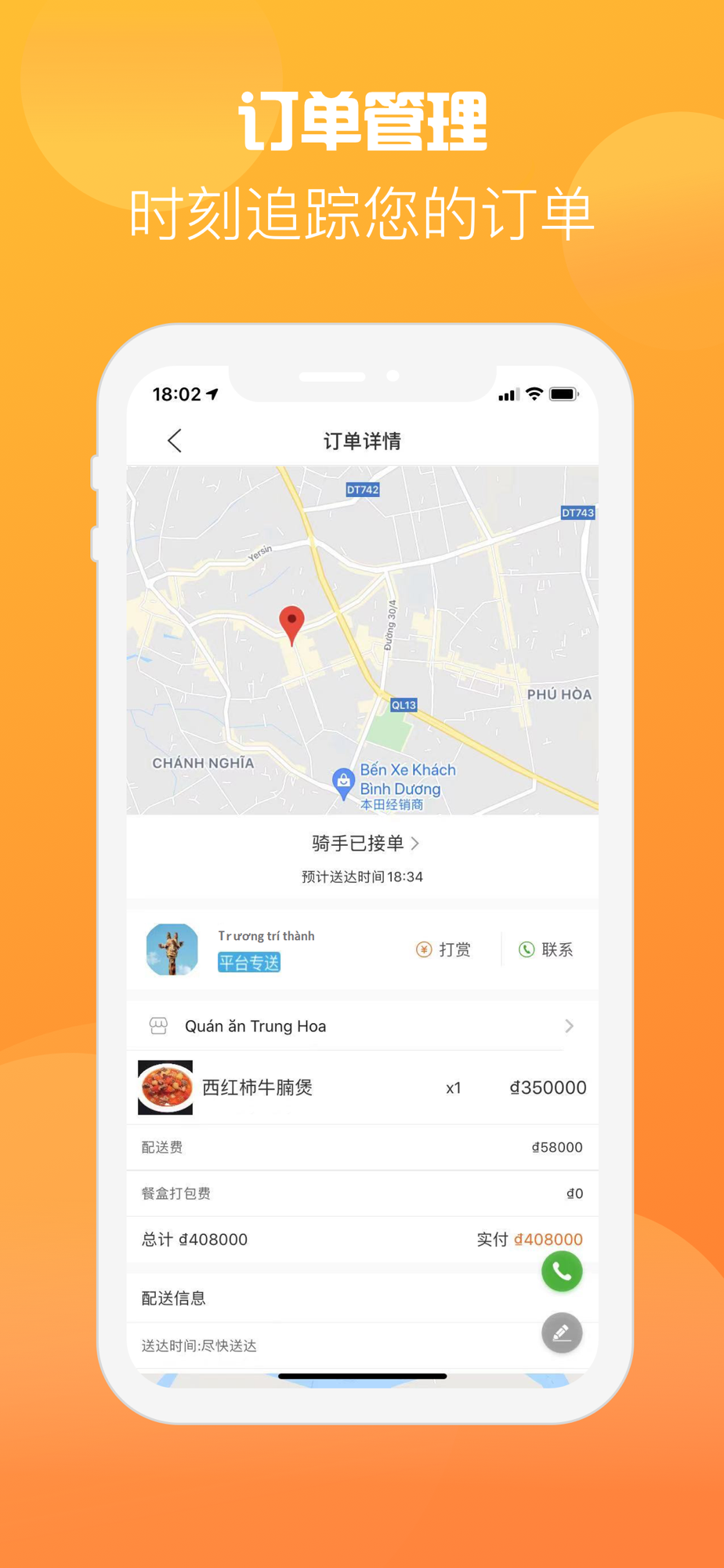 即时通知外卖状态,准时送达;