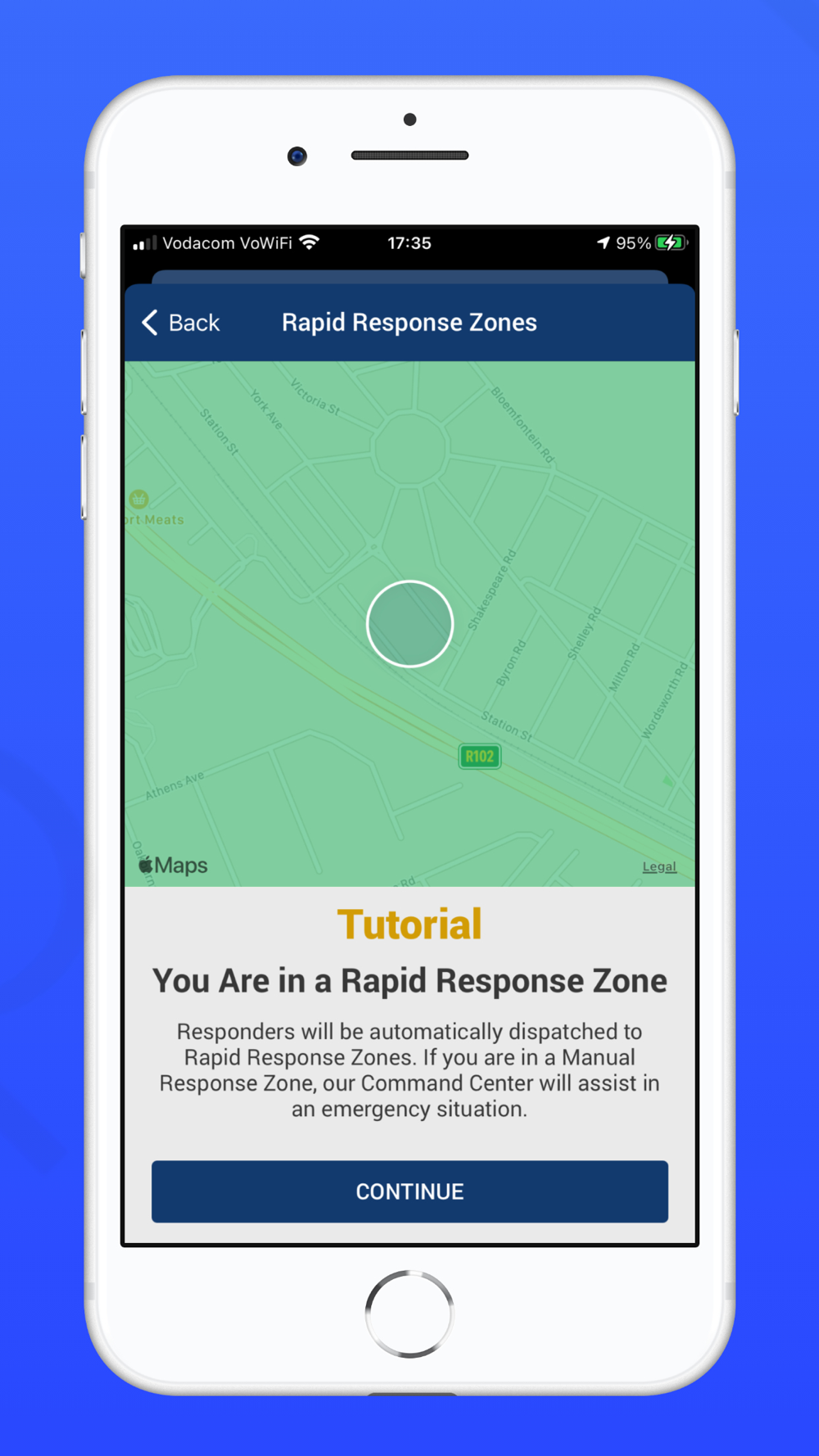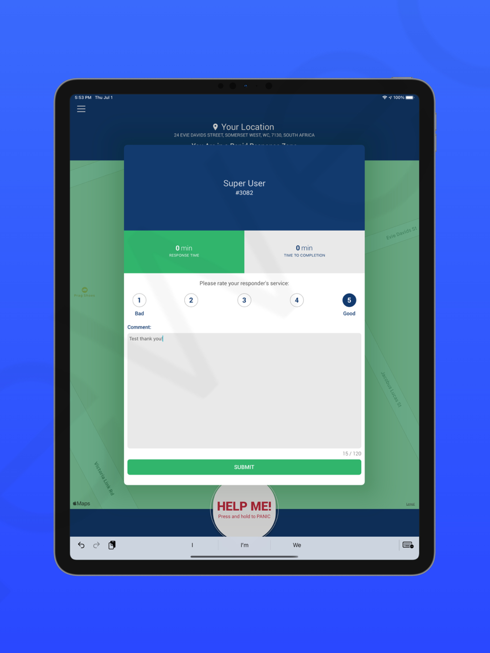 The Panic Help app allows you to panic when you are in an emergency and will notify the closest responder to attend to your situation.